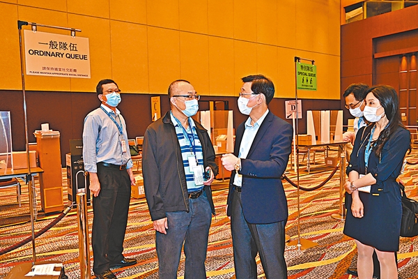 (香港文匯報記者 鄭治祖)選舉委員會界別分組一般選舉今日(19日)舉行,412名候選人將競逐13個界別分組共364個席位。投票人或獲授權代表可於上午9時至晚上6時期間前往票站投票。為確保今日的選舉在公平、公正和廉潔的情況下順利進行,政務司司長李家超昨日到位於灣仔香港會議展覽中心的中央點票站和投票站,視察投票和點票的準備及安排。他表示,是次選舉是完善選舉制度下的首場選舉,是落實「愛國者治港」原則的重要一步,具有特別意義。