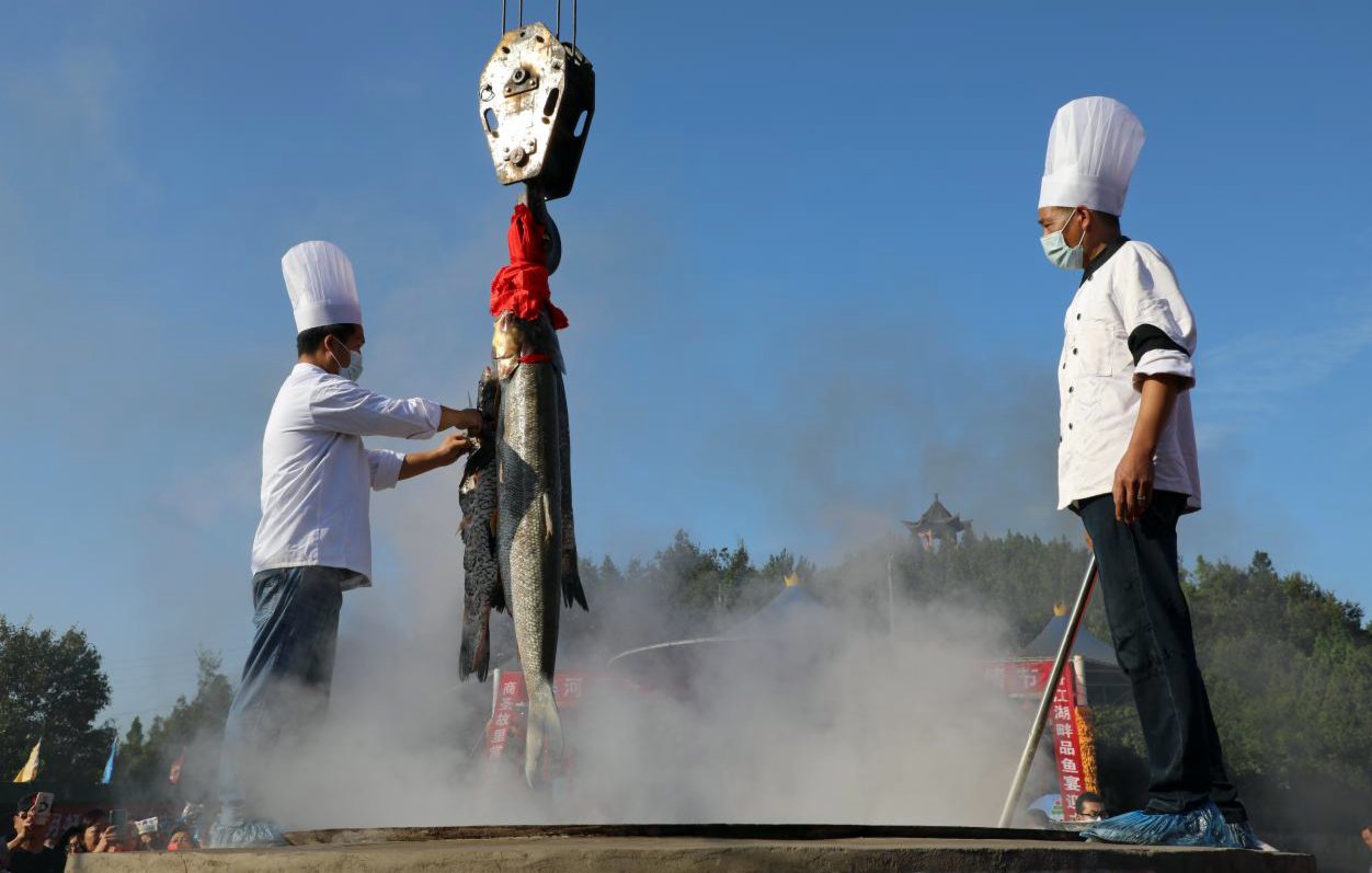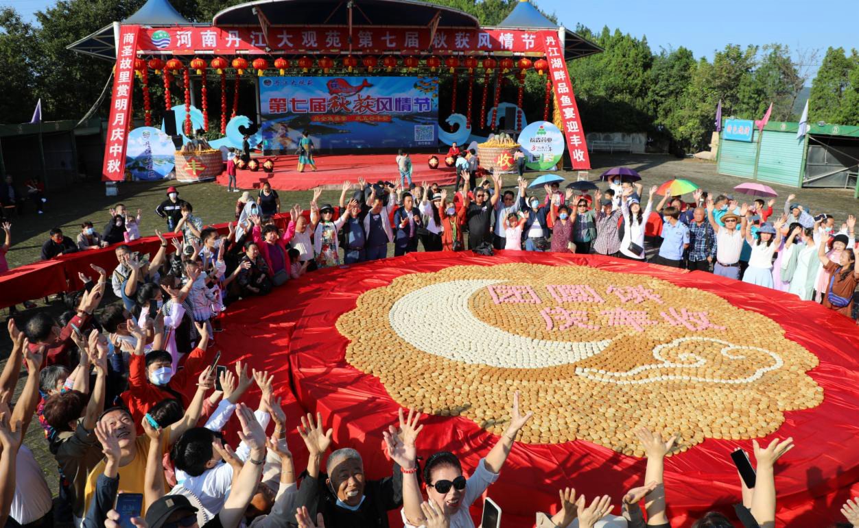 丹江庫區還為每位遊客準備了精美月餅,鮮美魚湯,供遊客們免費品嘗。9月20日清晨,丹江庫區支起一口直徑2.35米的萬人鍋。萬人鍋前懸掛了一條重達102斤,長1.75米的丹江魚王。有遊客表示,「從沒見過這麼大個頭的魚」,不少遊客和魚王比身高後合影留念。