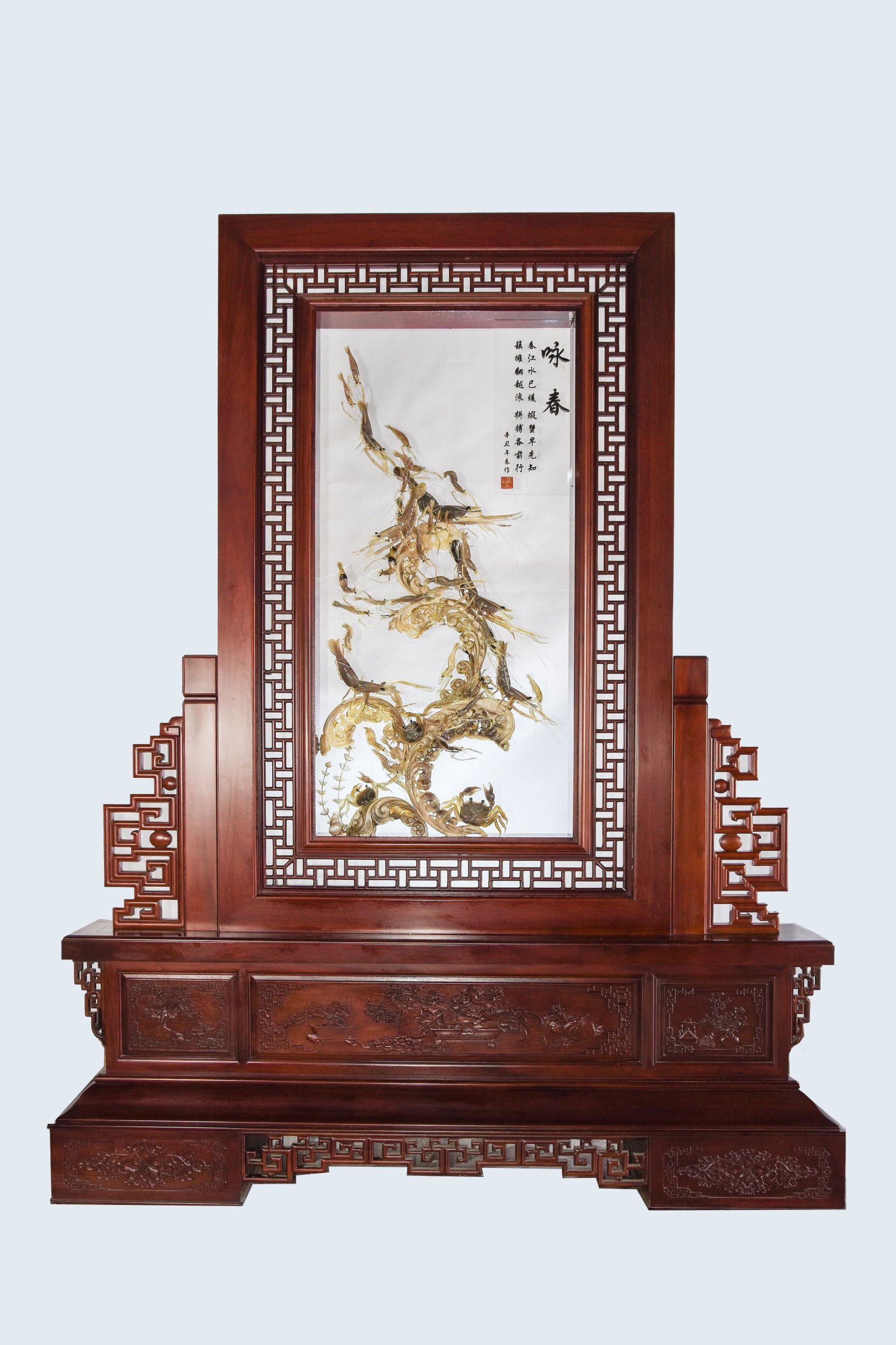 其中,國家級工藝美術大師裴永中的瓷板畫作品《改革開放總設計師》,採用瓷板材質釉上新彩技藝。表達了對改革開放總設計師鄧小平同志的深深懷念。國家級工藝美術大師王國利的壁毯作品《輪迴》,讚頌大自然中生命的頑強與偉大,傳遞生命的快樂、生命的頑強、生命的崇高之正能量價值觀。國家級工藝美術大師曹加勇的作品《國粹·花旦》雕刻出京劇代表人物旦角形象,體現出既可賞可讀可細觀又兼具無限想像空間的視覺藝術效果。