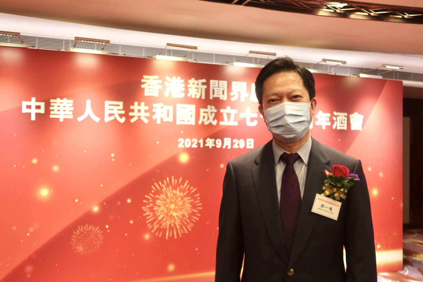 (大公文匯全媒體記者 楊新雨)香港新聞界慶祝中華人民共和國成立72周年酒會今日(29日)在港隆重舉行。香港新聞工作者聯會副主席郭一鳴表示,國慶將至,他最希望香港可以盡快戰勝疫情,與內地恢復通關,人們可以像過去一樣自由走動。他說,國安法的實施和選舉制度的完善,令社會逐漸安定下來,希望香港可以盡快恢復經濟活力與以往的朝氣,重新出發。