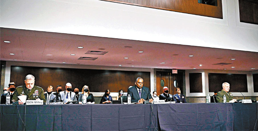 美軍參謀長聯席會議主席米利、國防部長奧斯汀和美國中央司令部司令麥肯齊前日出席參議院軍事委員會聽證會,就從阿富汗撤軍亂局等問題,接受議員質詢。米利形容阿富汗戰爭以美國的「戰略性失敗」告終,又表示憂慮塔利班未與恐怖組織「基地」斷絕聯繫。