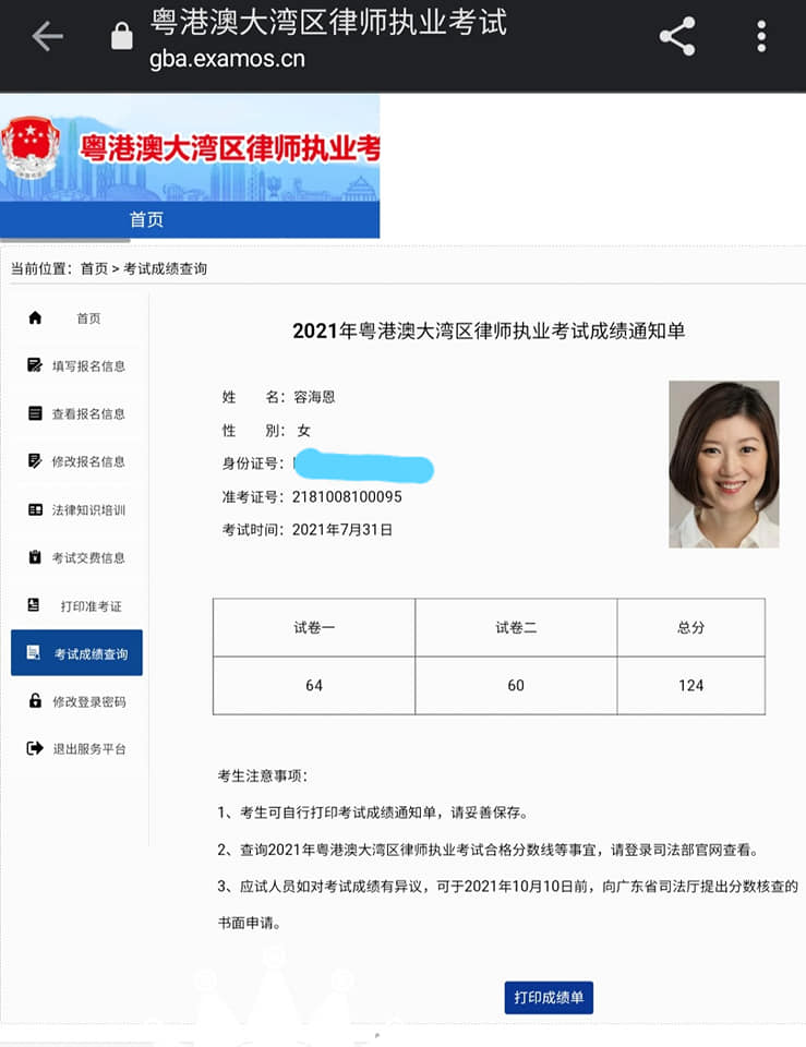 大公文匯全媒體報道:首次粵港澳大灣區律師執業考試7月31日舉行,因應疫情增設香港考場,為香港考生帶來莫大便利。司法部今日(30日)公布,2021年粵港澳大灣區律師執業考試合格分數線為120分,應試人員可即時透過司法部網站查詢本人成績,並自行下載打印成績通知單。應試人員對考試成績有異議的,可於10月10日前向廣東省司法廳提出分數核查的書面申請。
