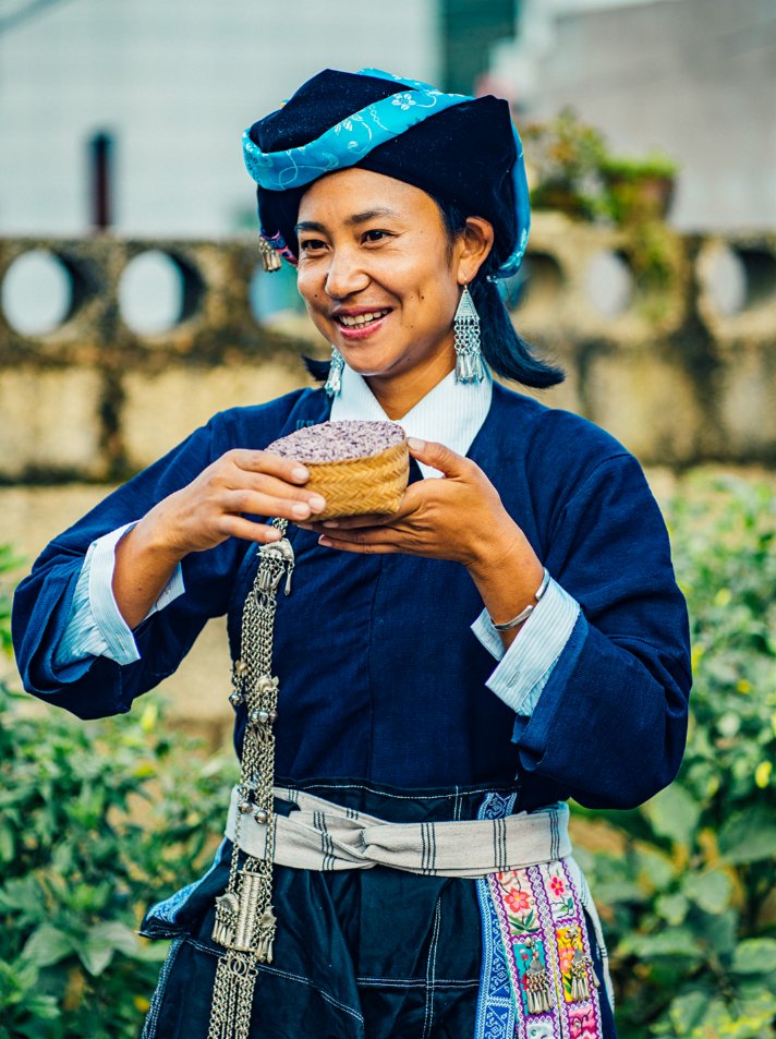 墨江哈尼梯田中的墨江紫米已有360多年的培育歷史,享有「接骨米」、「胭脂米」、「補血米」等讚譽,不僅是明清時期的「貢」米,更是重要的高山珍稀生物遺傳種質資源。李元美說,她還記得,小時候吃到嘴裏的紫米又糯又甜,吃紫米是一件幸福的事。