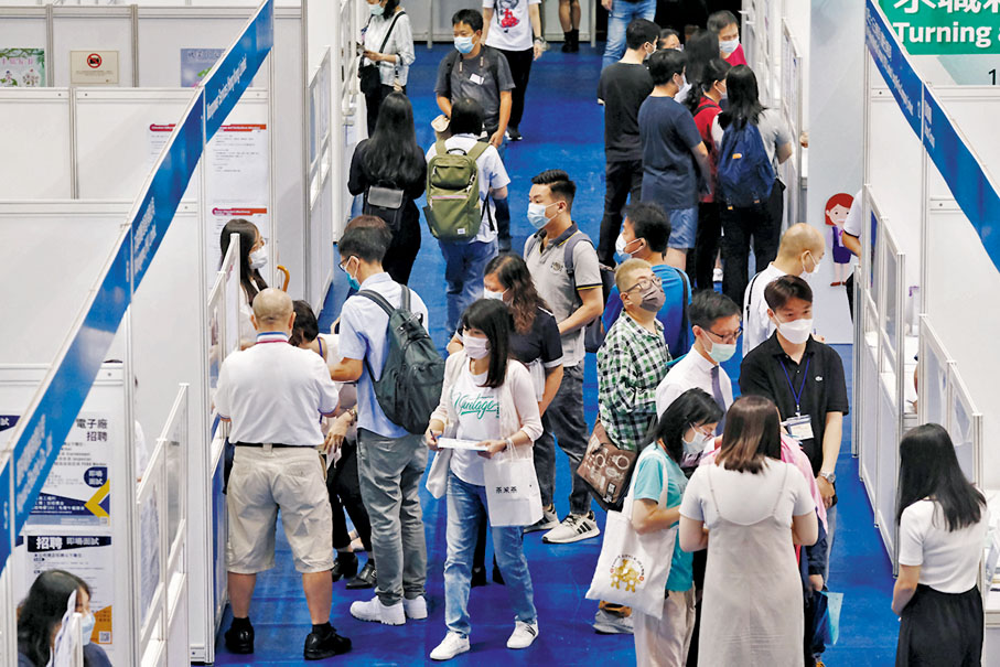 香港文匯報訊(記者 文森)暑假完結後,大批畢業生投入勞動市場。勞工處昨日於旺角舉行的大型招聘會,有不少年輕求職者在颱風迫近前到場尋覓心水工作,令招聘會的人流明顯比上月同類招聘會增加不少。有剛畢業的年輕人表示,招聘會提供的職位普遍要求具幾年以上的相關工作經驗,不太適合剛剛畢業的群體。
