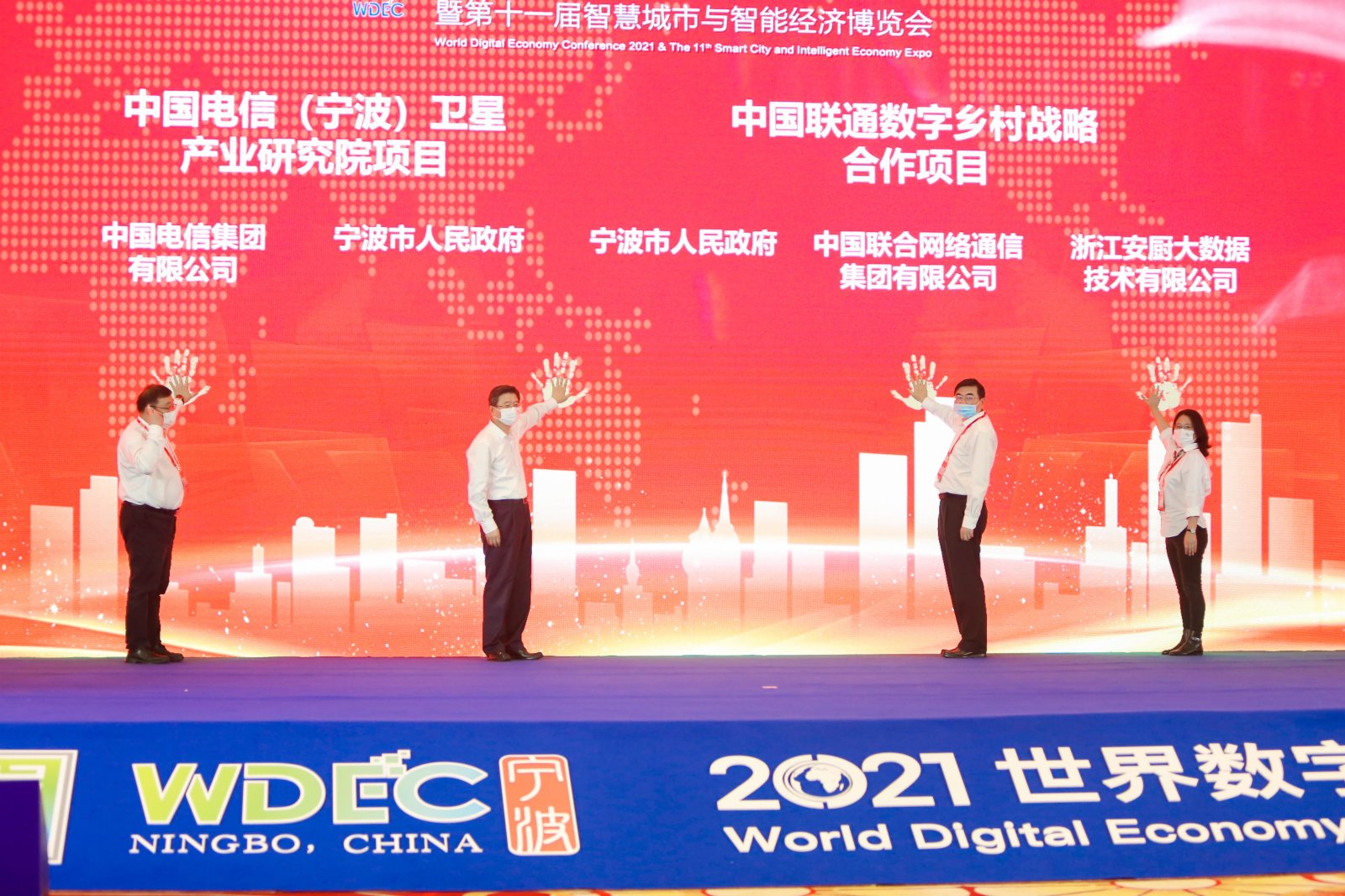 (香港文匯網記者 王莉 寧波報道)15—17日,2021世界數字經濟大會暨第十一屆智慧城市與智能經濟博覽會在浙江寧波舉行。期間,寧波市政府與中國電信共建中國電信(寧波)衛星產業研究院項目舉行了簽約儀式。