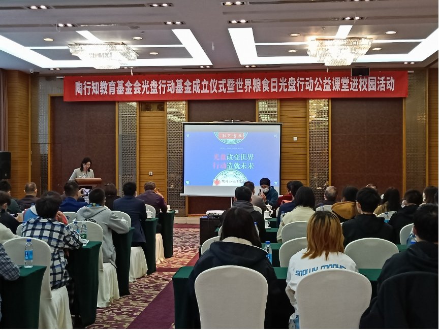 (香港文匯網記者 趙一存 北京報道)在第41個世界糧食日到來之際,陶行知教育基金會光盤行動基金成立儀式暨世界糧食日光盤行動公益課堂進校園活動16日在中國地質大學舉辦。據了解,此次活動是為弘揚與實踐陶行知先生「行是知之始」的教育思想,推動反食品浪費法的落實,遏制舌尖上的浪費,由光盤行動發起人徐志軍與陶行知教育基金會、中國誠通生態有限公司、中財鼎盛科技集團有限公司等單位聯合發起。