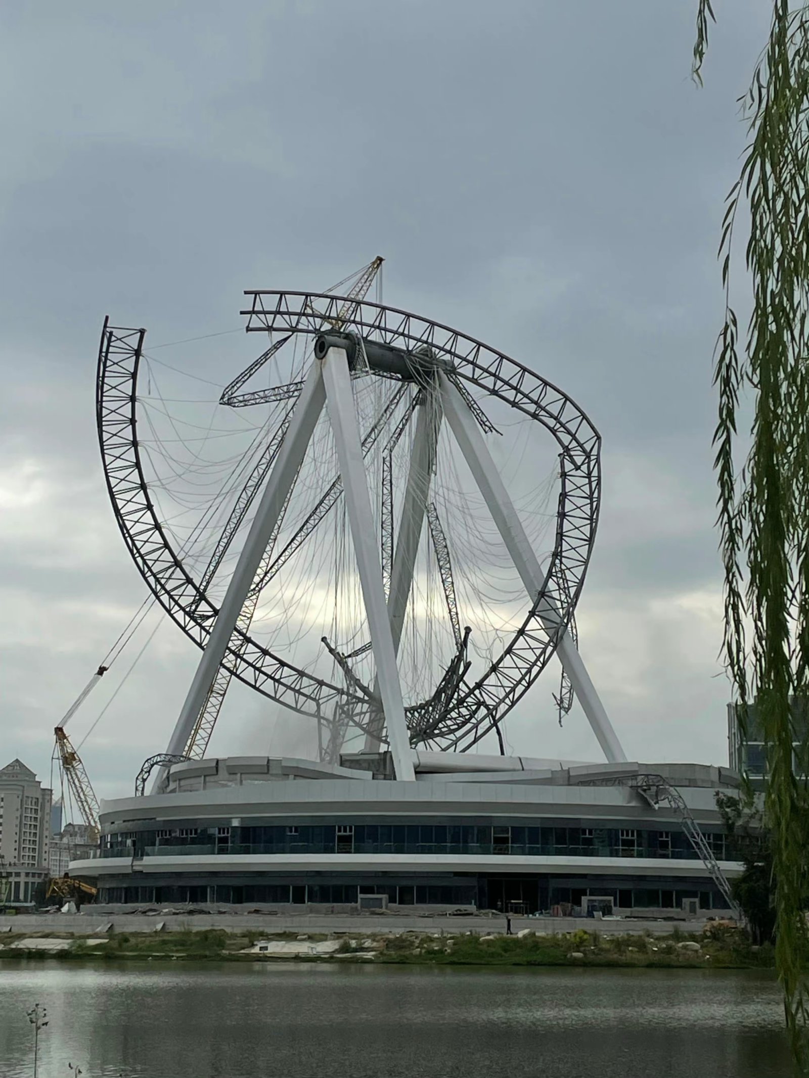 (香港文匯網記者 何德花)今日(18日)下午2時40分左右,福州晉安區晉安湖附近一在建摩天輪發生倒塌事故。家住附近的福州市民陳先生介紹,當時聽到一聲巨響,以為是爆炸聲音。陳先生描述,倒塌前摩天輪安裝進度還剩下六分之一左右。目前,現場已被封鎖,消防車和救護車已進入現場。警車和公園保安在維持秩序。