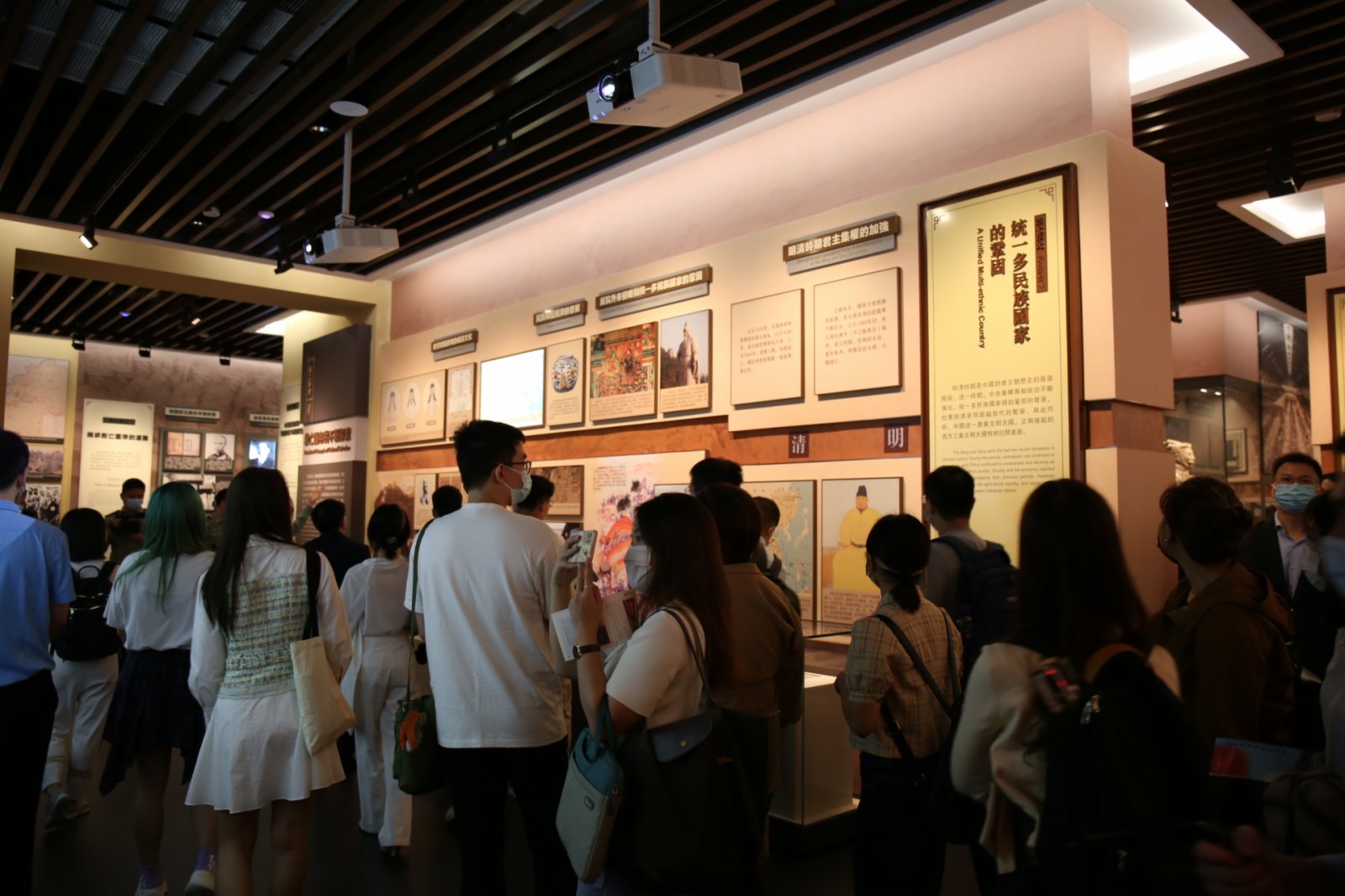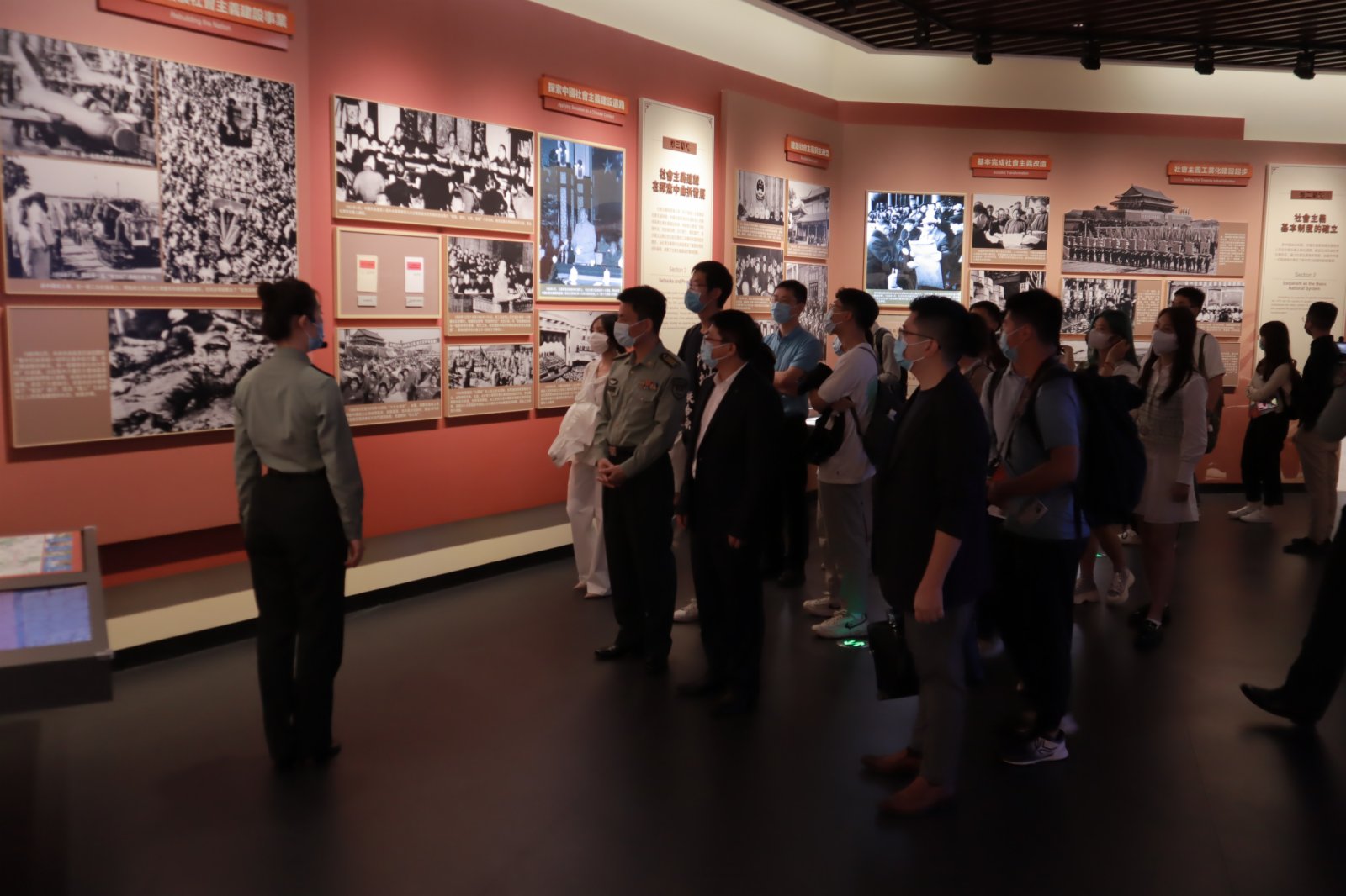 青年大學生們首先參觀了「夢起東方」主題展覽。主題展覽分為「中國夢」、「強軍夢」、「香江衛士」三個主題展廳和裝備模型展示區。學生們認真傾聽解說員的講解,仔細地觀看圖文雕塑、文物實物、影像資料,在南京大屠殺遇難者電子獻花台獻花,還親身體驗了解放軍裝備模型。經過參觀,學生們全面了解了中華民族復興圖強的燦爛歷史和輝煌成就,以及人民軍隊強軍興軍、維護香港長期繁榮穩定的光輝歷程,紛紛表示為偉大的祖國和威武的人民軍隊所深深震撼和激勵。