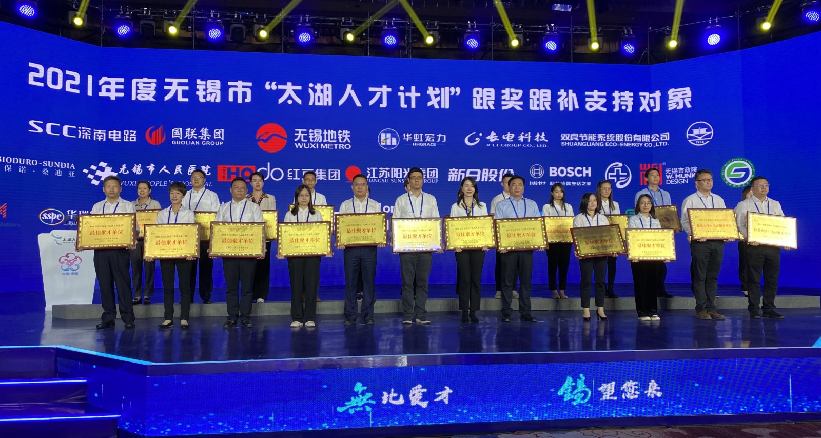 帆軟軟件有限公司、費森尤斯卡比華瑞製藥有限公司、格林美(無錫)能源材料有限公司、無錫帝科電子材料股份有限公司、無錫銳科光纖激光技術有限責任公司獲得「無錫最具創新發展聚才單位」的稱號。