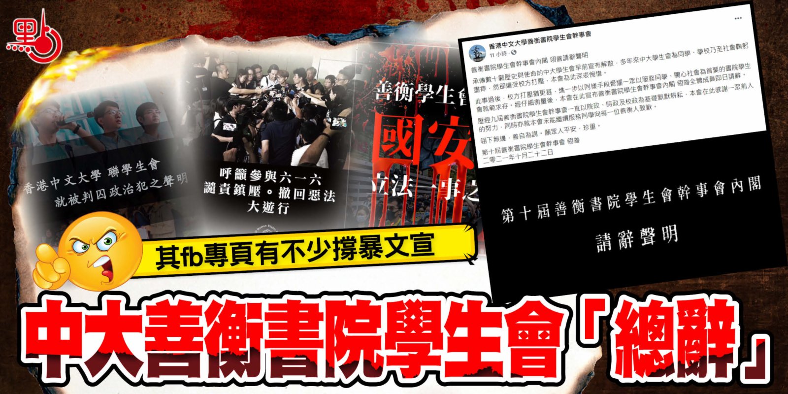 大公文匯全媒體報道:香港中文大學再有學生組織解散或總辭,善衡書院學生會幹事會內閣發表聲明,表示全體成員即日(22日)請辭。該幹事會稱,有數十年歷史的中大學生會早前宣布解散,多年以來中大學生會為同學、學校乃至社會鞠躬盡瘁,卻受到校方「打壓」,對此深表惋惜。