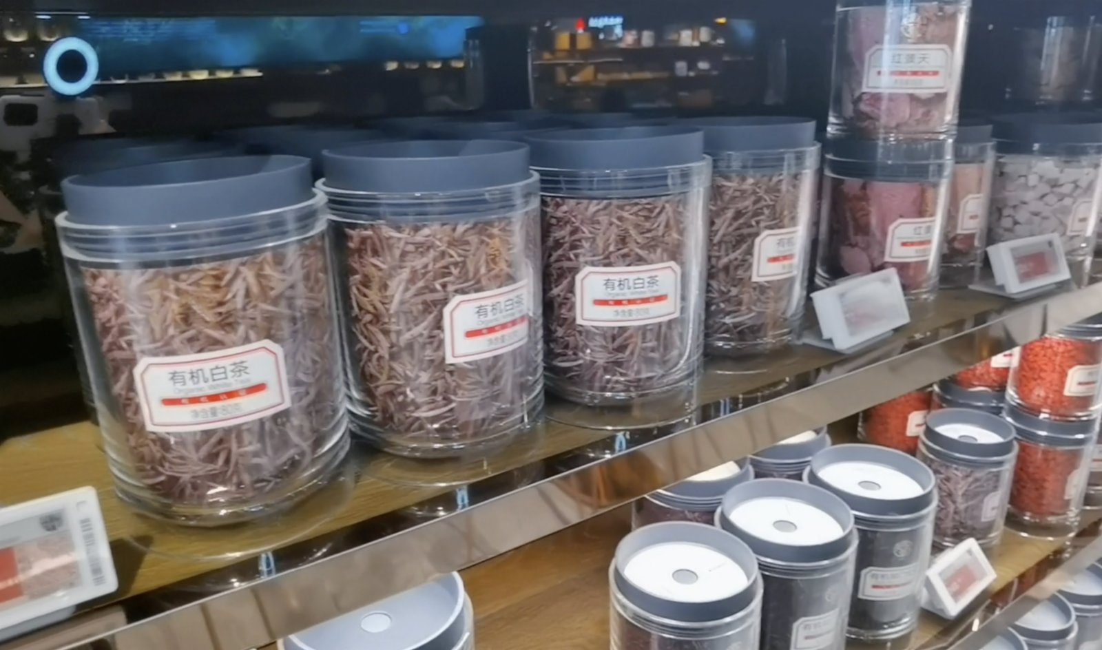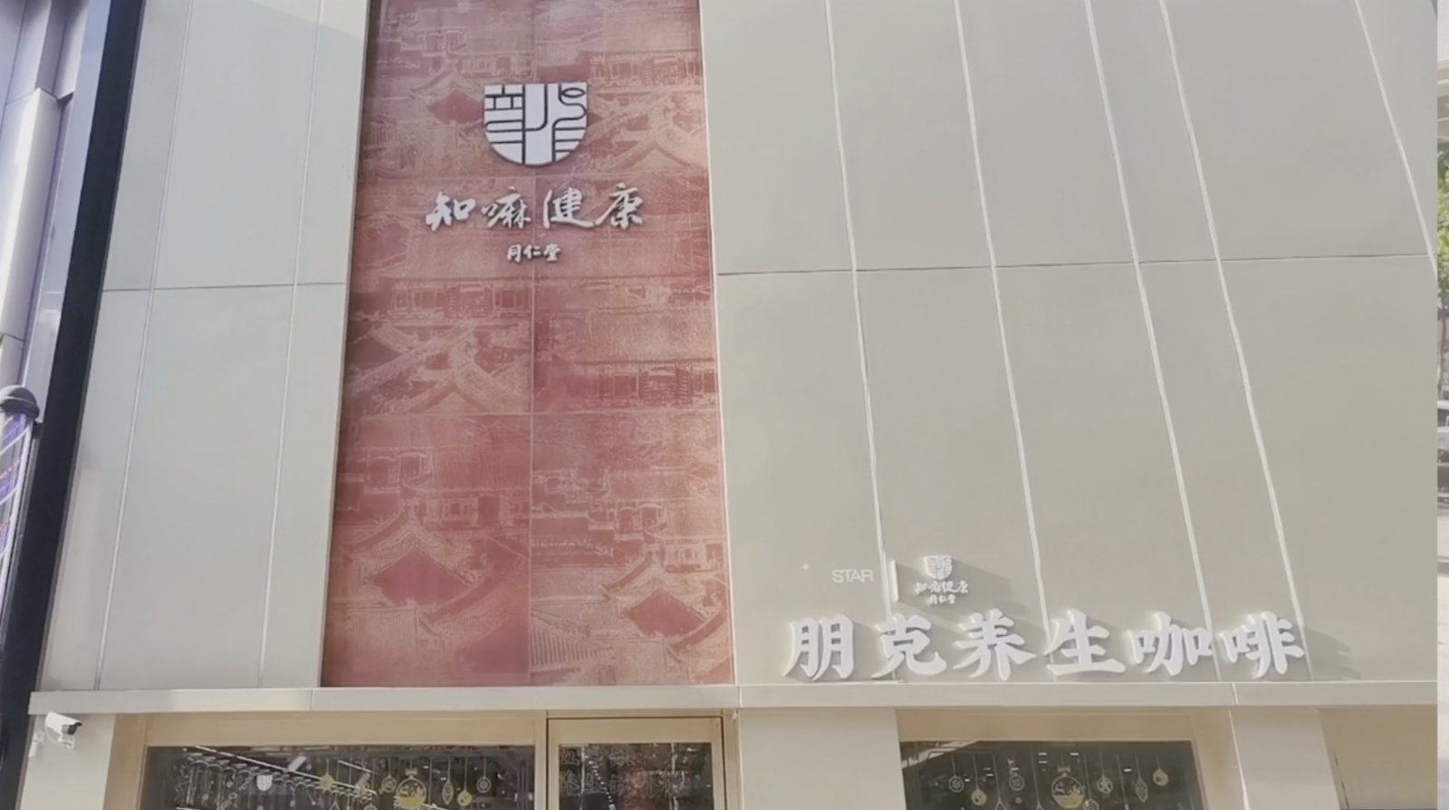 這家「同仁堂咖啡店」的官方名稱是「知嘛健康」,在北京有兩家門店。記者走進位於雙井的總店發現,該店共有兩層,第一層的天花板上鋪滿了中藥材的裝飾,主要售賣咖啡、奶茶等飲品,也有蜂蜜、枸杞、有機紅豆等健康藥食的展示售賣;第二層有老中醫坐診,可現場抓藥,還有先進的儀器能夠檢測身體。記者看到,常規飲品有美式、卡布奇諾、Dirty等,養生咖啡則有羅漢果美式、紅景天摩卡等,售價24元-42元之間。