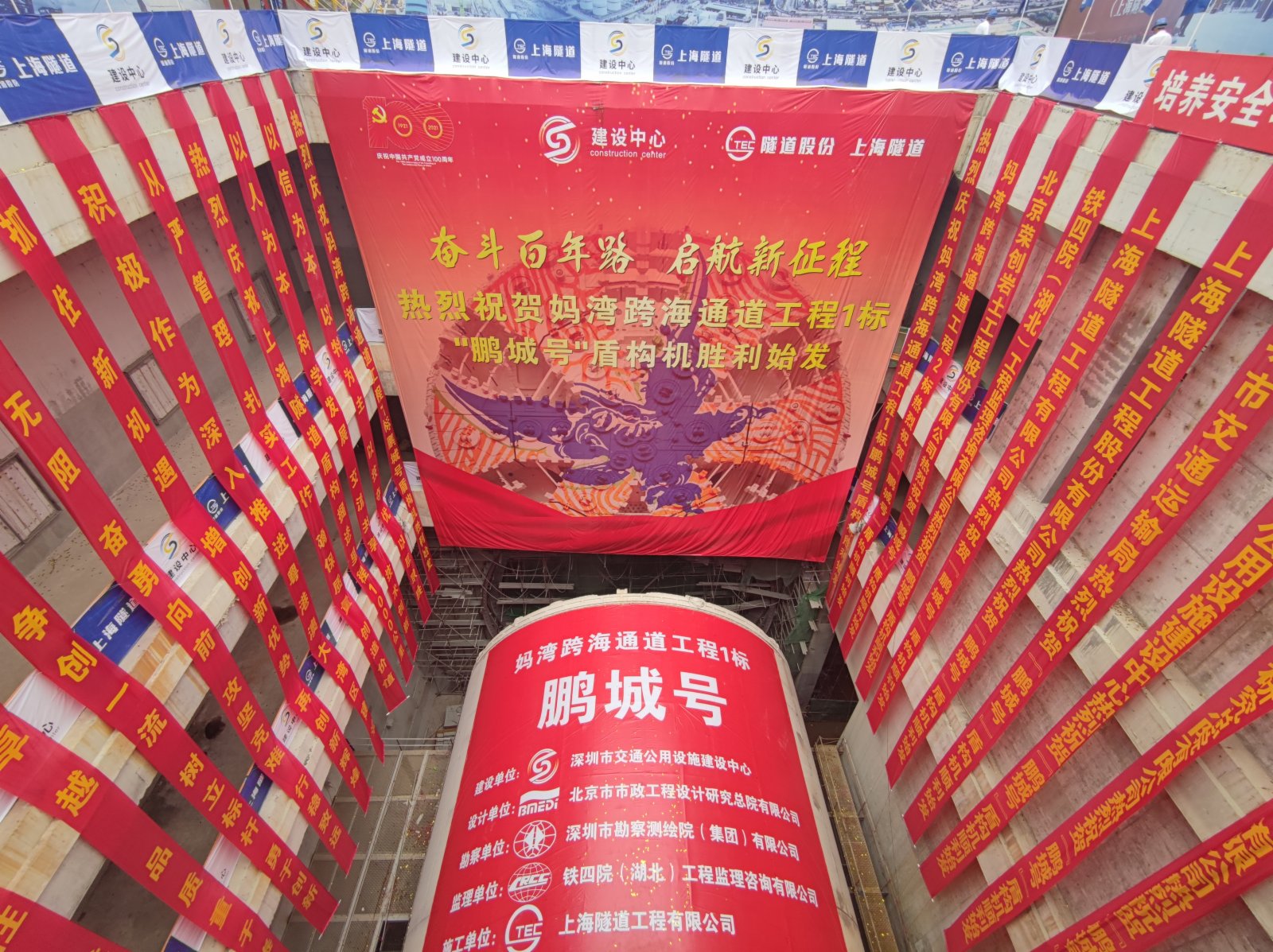 媽灣跨海通道工程包含兩條大直徑盾構隧道,其中位於2標段寶安大鏟灣的「媽灣號」盾構機已於2021年7月15日始發,本次始發的1標段的「鵬城號」盾構機,計劃20個月完成由媽灣向大鏟灣方向的穿越。