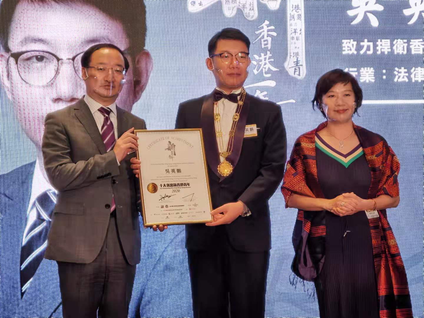 大公文匯全媒體報道:2020「十大傑出新香港青年」頒獎典禮於今日(31日)舉行,香港高等法院執業大律師吳英鵬、香港理工大學終身教授陸海天、鳳凰衛視節目主持人及製片人傅曉田、華語影視演員楊穎(Angelababy)等10位新來港青年當選。因應新冠肺炎疫情,原定去年底的頒獎典禮延期至今日舉行。