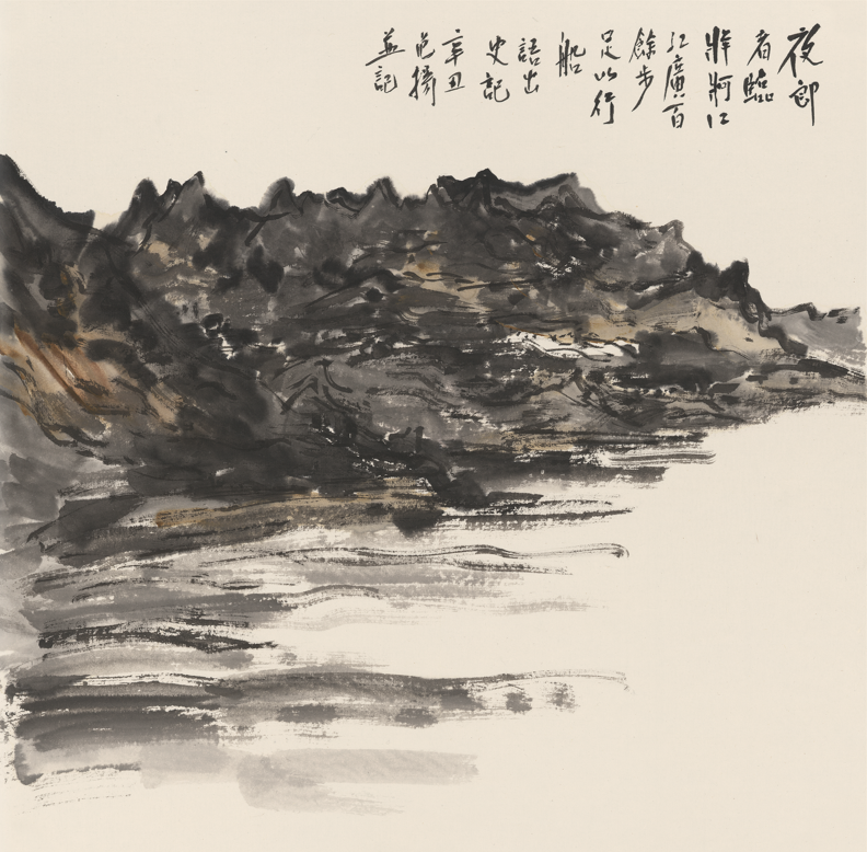 入住宿舍後,天色漸晚,我又畫水墨方卡紙50cm×50cm一件,筆墨頗順暢。此刻,牂牁江風平水靜。我也正好「黑團團裏墨團團」,純用水墨畫出了牂牁江畔「黑墨團裏天地寬」的感受。
