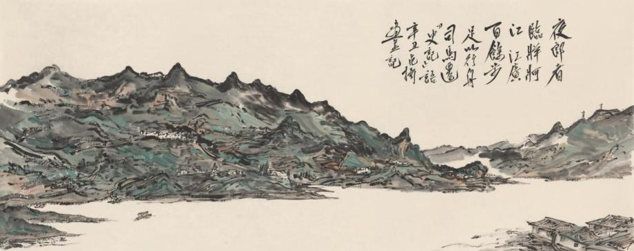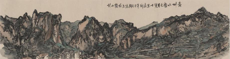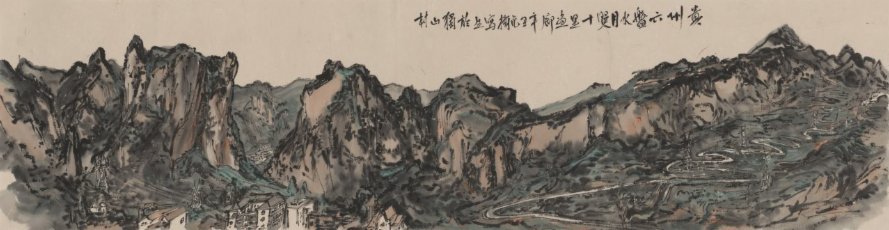 下午到了獨山村,此處有崇山峻岭,茂林綠蕉;更有十裏畫壁,翠色如屏。遠遠望去,山路盤旋,蜿蜒如龍。我對景揮毫,畫了一件大麻紙,寬200cm,高50cm,畫了三個半小時,氣勢頗壯闊。