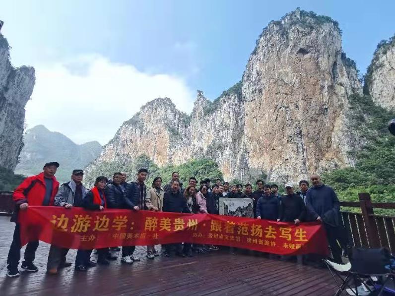 辛丑深秋,我作為主講導師與《中國美術報》學員赴貴州寫生。程瑞鑫帶隊,學員20餘,隨行有山東電視台馬成2人,助教楊軍等,我、金玲、范立一家3口,自家隊伍30餘人。又有貴州「墨池」攝影組隨隊,一行共約40人,兵強馬壯,準備齊整。