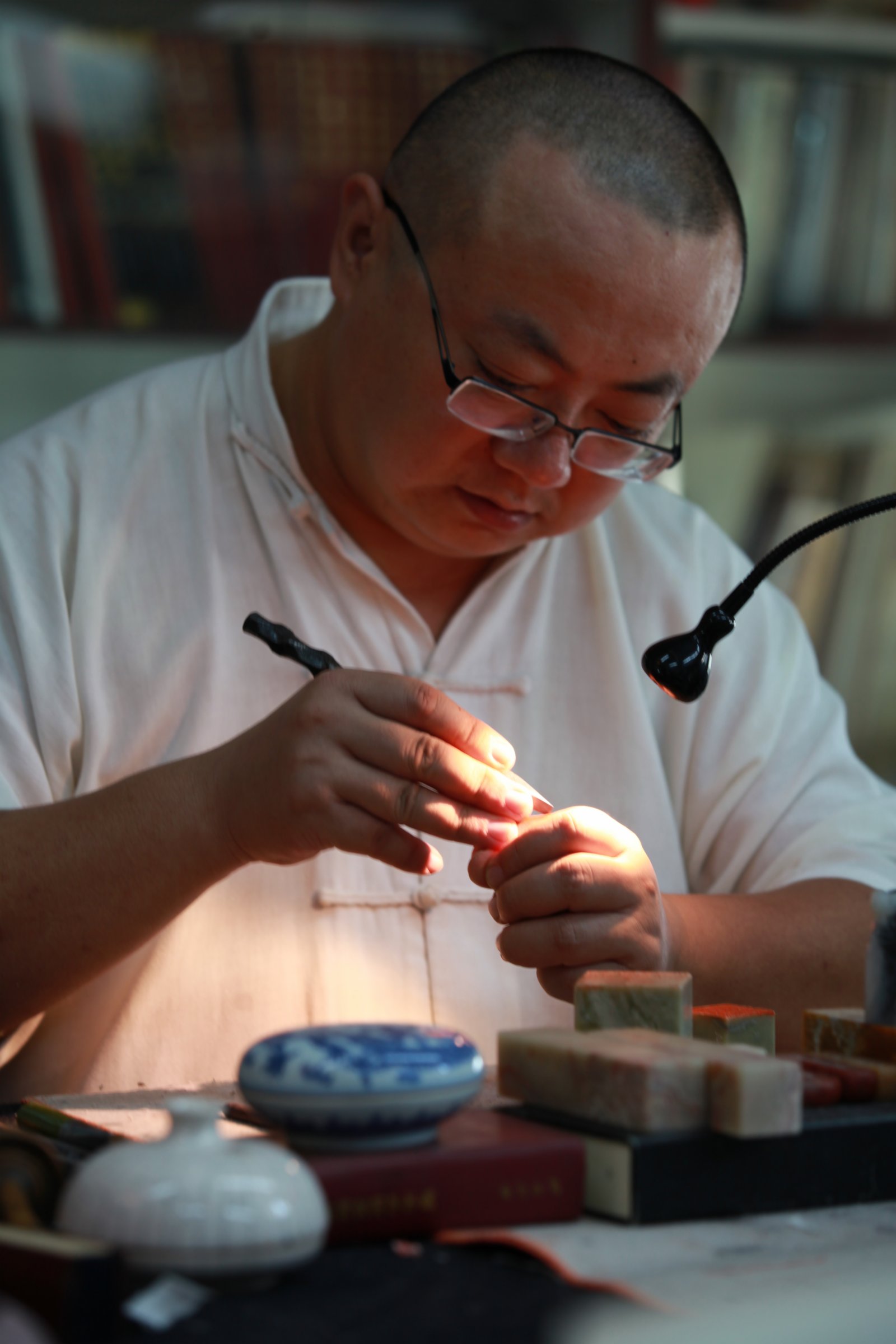 (香港文匯網記者 王珏)今年44歲的內地知名書印家楊華,已在書法篆刻道路上走過30餘載。他不為浮華時風所左右,一如既往,保持着「執」的態度,或拈石下刀,刻一印,成一印;或展紙落墨,作一書,成一書,在刀筆與硯石的耕耘中體會生活的樂趣,於方寸之間尋找藝術之真諦。