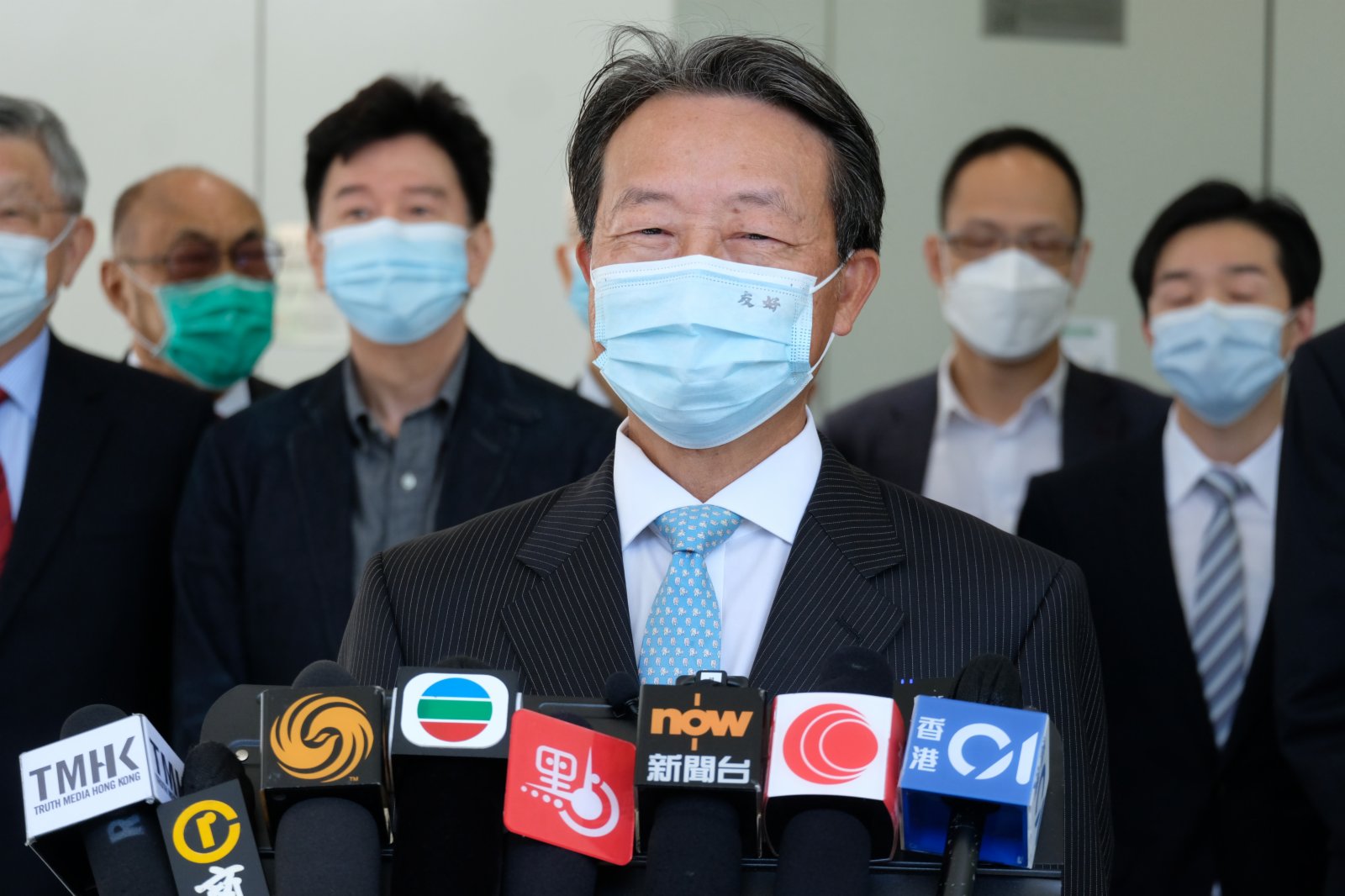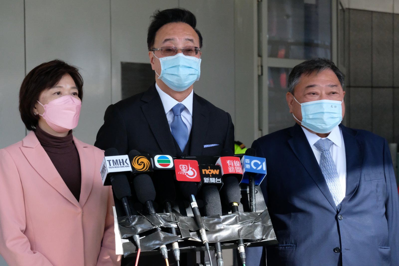 11時左右,前律師會會長林新強出現在政府總部,報名競逐功能組別中的法律界議席,第六屆立法會議員何君堯到場支持。