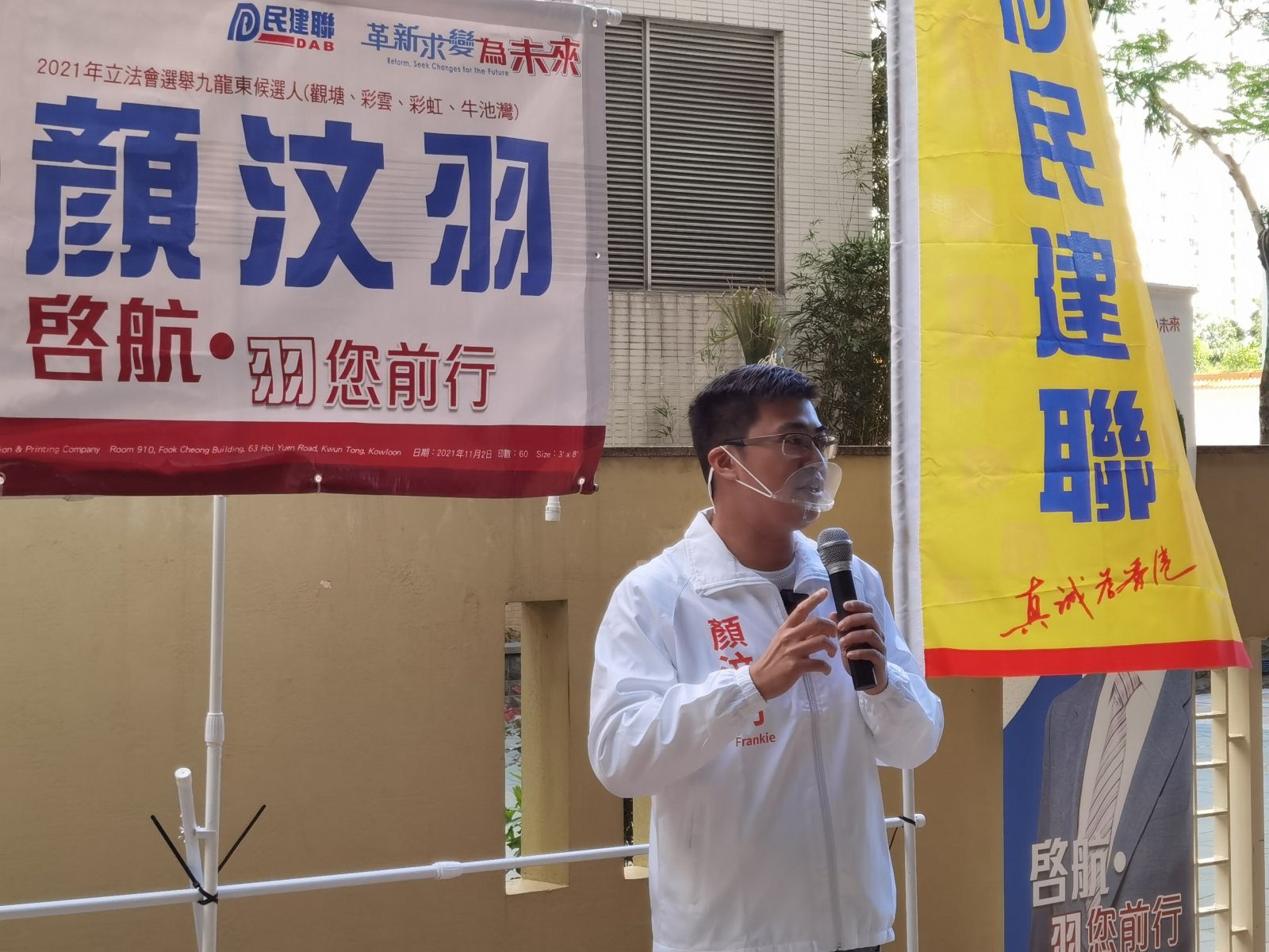 民建聯今日派出現任香港觀塘區議會佐敦谷選區議員顏汶羽,他報名參選九龍東選區。同區參選人有工聯會九龍東總幹事鄧家彪。