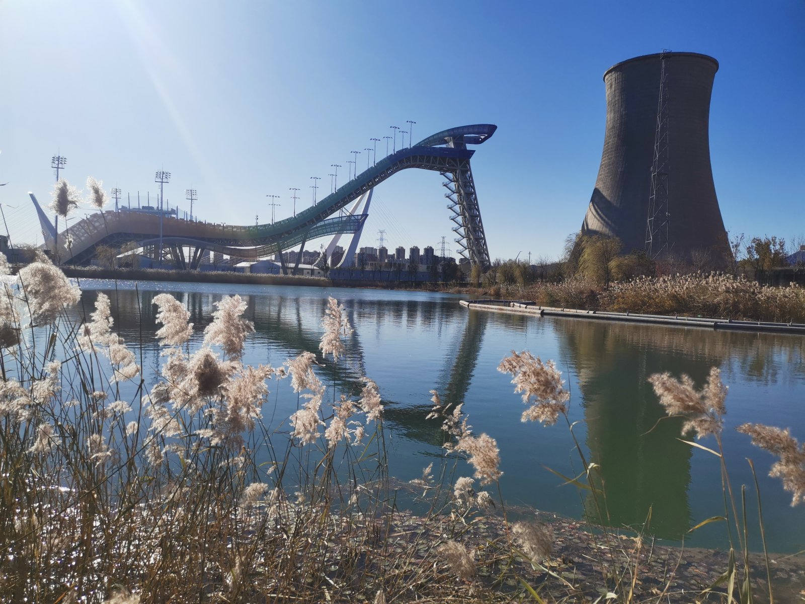 首鋼滑雪大跳台位於首鋼老工業園北區,場地由北向南依次分布着原首鋼發電主廠房、冷卻塔及原首鋼製氧廠廠房,充分利用了大跳台周邊首鋼原有老廠房和工業構築物進行修繕與改造,滿足冬奧會比賽、轉播、觀眾服務等多項功能。據了解,原來首鋼老廠區的冷卻泵站,在冬奧會期間將變身成為驗票安檢大廳和賽事管理辦公區,賽後將被改造為多功能綜合樓,為未來的首鋼滑雪大跳台體育公園提供配套服務功能;舊時的制氧主廠房在冬奧會賽時期間被改造成為綜合服務樓。