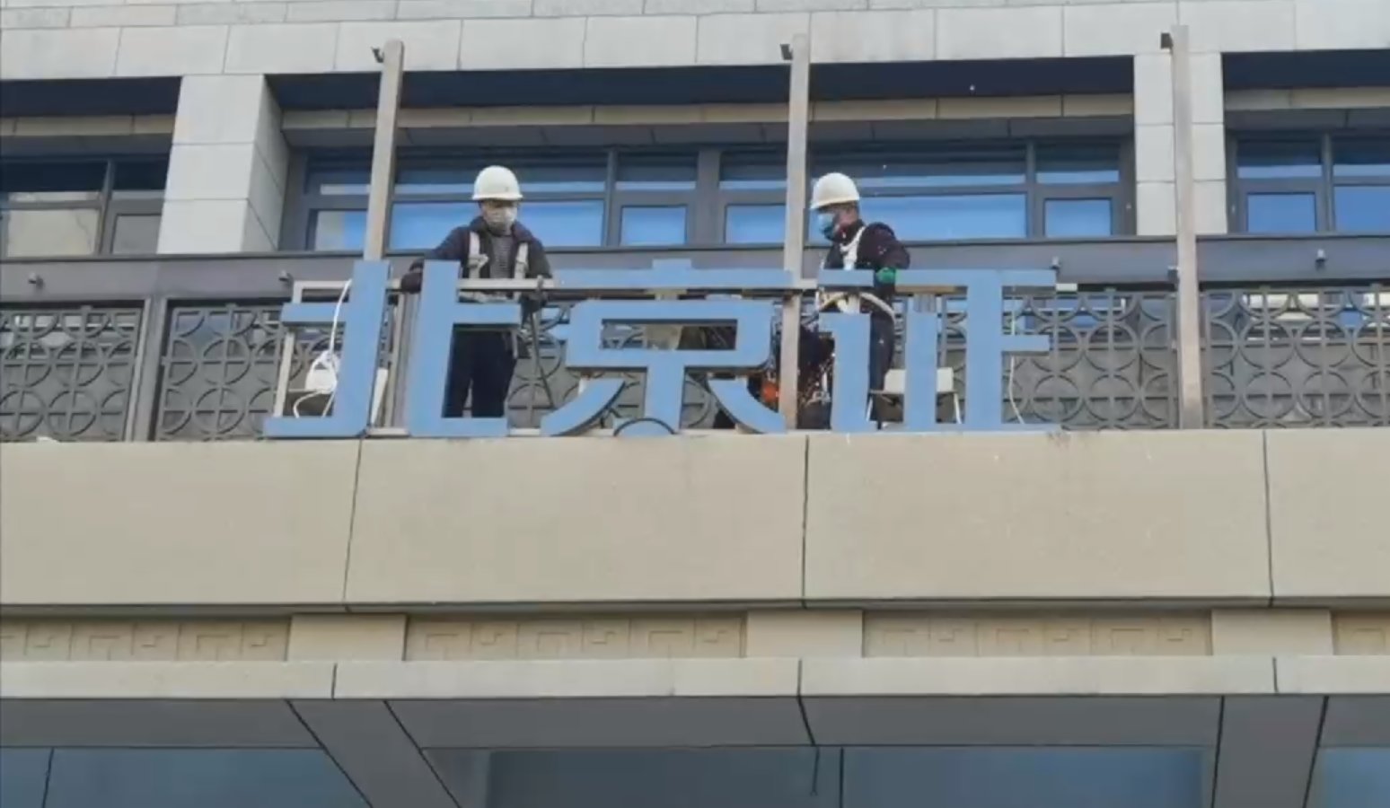 大公文匯全媒體報道:北京證券交易所辦公大樓今日(14日)正在進行門牌吊裝和焊接的工作。明日起北交所所有股票將正式開市交易。