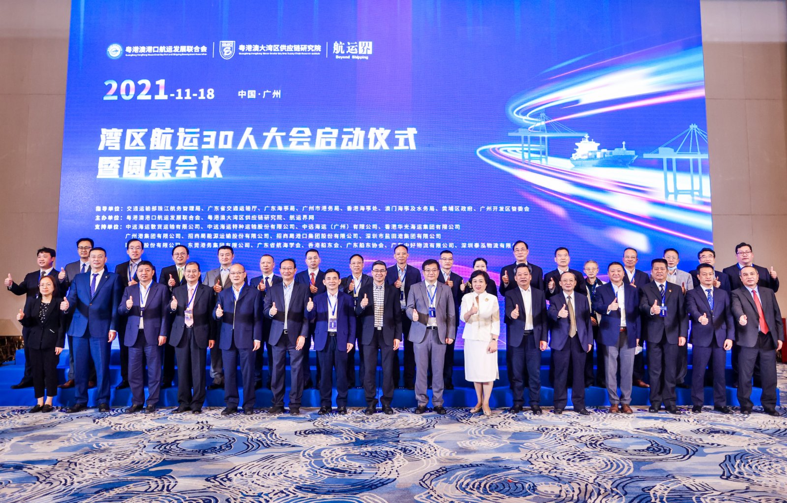 論壇期間,舉行了「灣區航運30人」啟動儀式以及灣區航運30人授牌儀式。灣區航運30人代表發言表示,「灣區航運30人」成員企業將增強成員之間交流與聯繫,不斷提高行業專業度;創新投融資服務;搭建會員人才服務平台,助力灣區航運產業高質量發展。香港海事處、香港船東會代表參與線上發言。