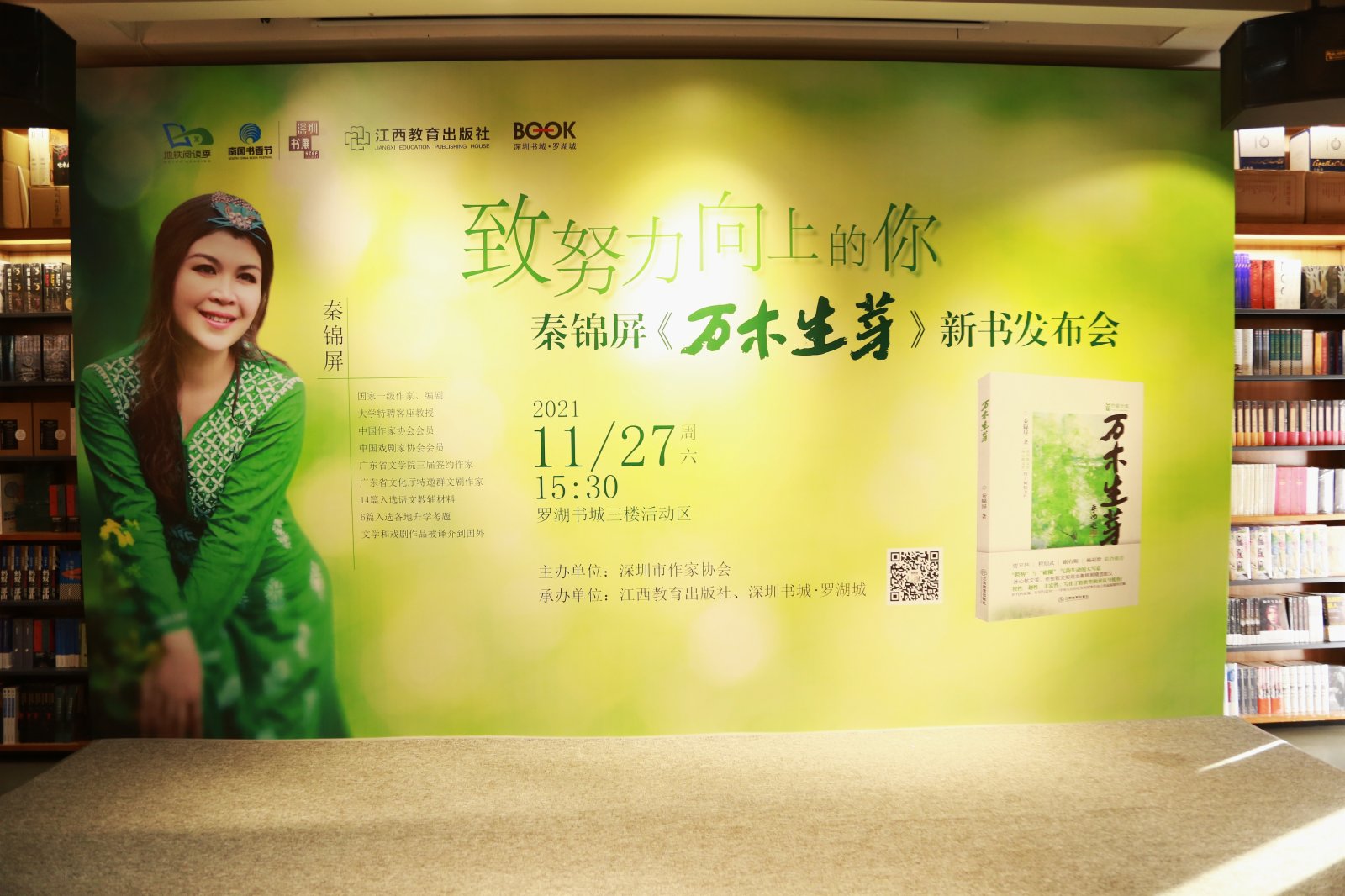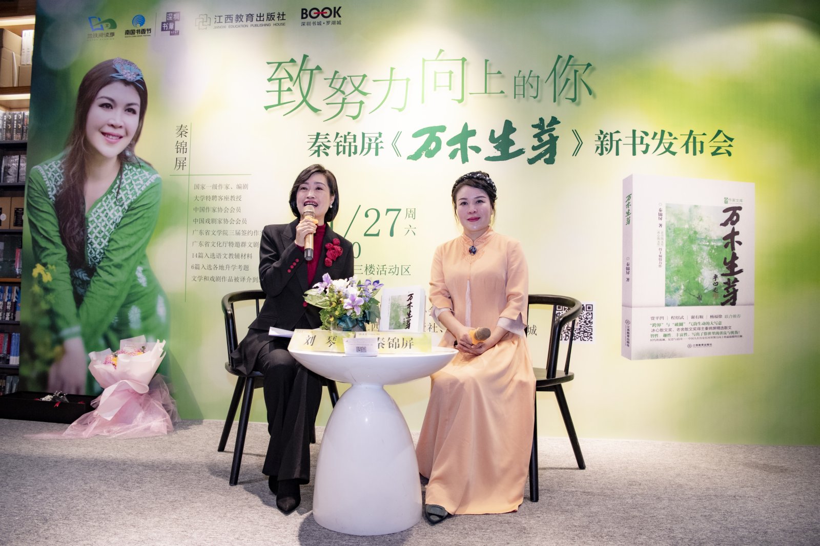 (通訊員 溫秋圓 楊燕霞)11月27日,冰心散文獎、老舍散文獎得主秦錦屏精選散文集《萬木生芽》新書分享會在深圳羅湖書城舉辦。作為第八屆深圳文學季系列活動之一,本次活動由深圳市作家協會主辦,江西教育出版社、深圳羅湖書城承辦。專家學者、作家代表、廣大文學愛好者,以及曾在課堂上讀過秦錦屏作品,慕名而來的師生等參加本次活動。