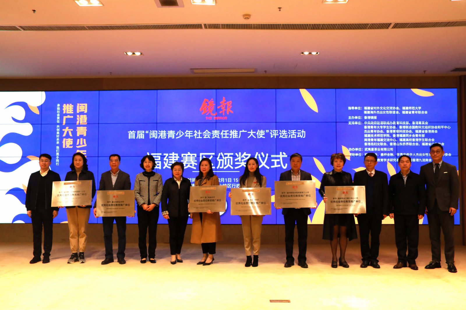 此次評選活動,閩港兩地共有24位中小學生以及18位(組)大學生獲得「社會責任推廣大使」稱號,包括福州華僑中學、福州教育學院附屬第一小學、天水圍香島中學、福建中學、福建中學附屬學校等12所中小學被評為「優秀社會責任教育推廣單位」。