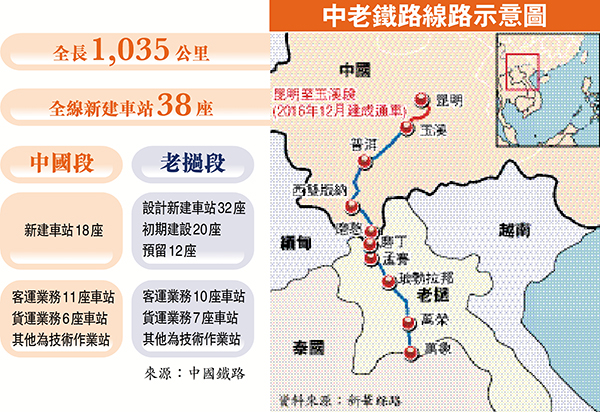 習近平指出,中老鐵路是兩國互利合作的旗艦項目。鐵路一通,昆明到萬象從此山不再高、路不再長。雙方要再接再厲、善作善成,把鐵路維護好、運營好,把沿線開發好、建設好,打造黃金線路,造福兩國民眾。