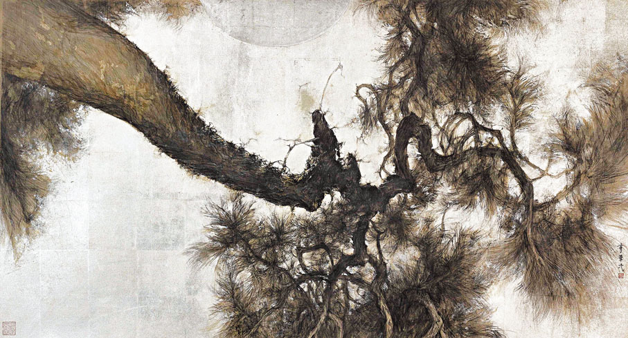 中國畫中的山水、石頭、水紋,既現實又抽象,人們在現實中難以找到相同的場景,畫作已是介於主觀與抽象之間的表達。受感於精妙的宋朝山水畫技法,他將自己對山水的嚮往投注在創作之中,卻始終說不清山水寄情的那個「情」字,對他而言意味着什麼:「可能是對意象之美的情,可能是一種詩意,我無法用言語講清,唯有用畫筆表達。」而與此相比,畫作是否具有當代性,在他看來已經不那麼重要:「社會已是多元化的社會,當不當代其實已經不要緊,創作的語境是重要的,發展是重要的,自己的想法是重要的。藝術要創新,搞繪畫和裝置藝術都是一樣。」他也強調,「當代」不等於「西方」:「東方也有很好的當代藝術,張大千,趙無極都做了很偉大的事情,令全世界看到東方有很美的東西,我們要繼續努力。」