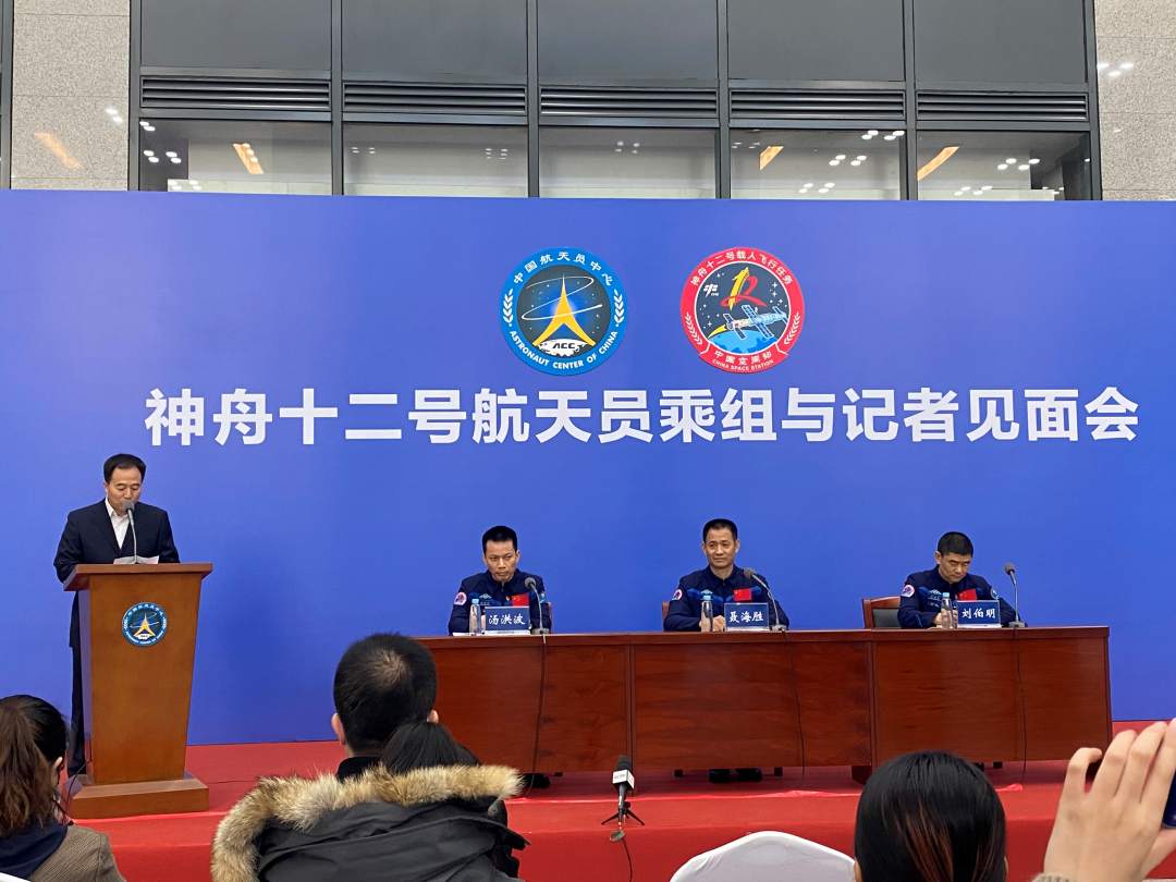 神舟十二號載人飛船返回艙今年9月17日下午在東風着陸場成功着陸,3位航天員聶海勝、劉伯明和湯洪波的飛行任務圓滿成功,順利返回地球。中國航天員科研訓練中心今日(7日)在北京航天城舉行神舟十二號航天員乘組與記者見面會。這是神舟十二號乘組返回後,首次與媒體和公眾正式見面。