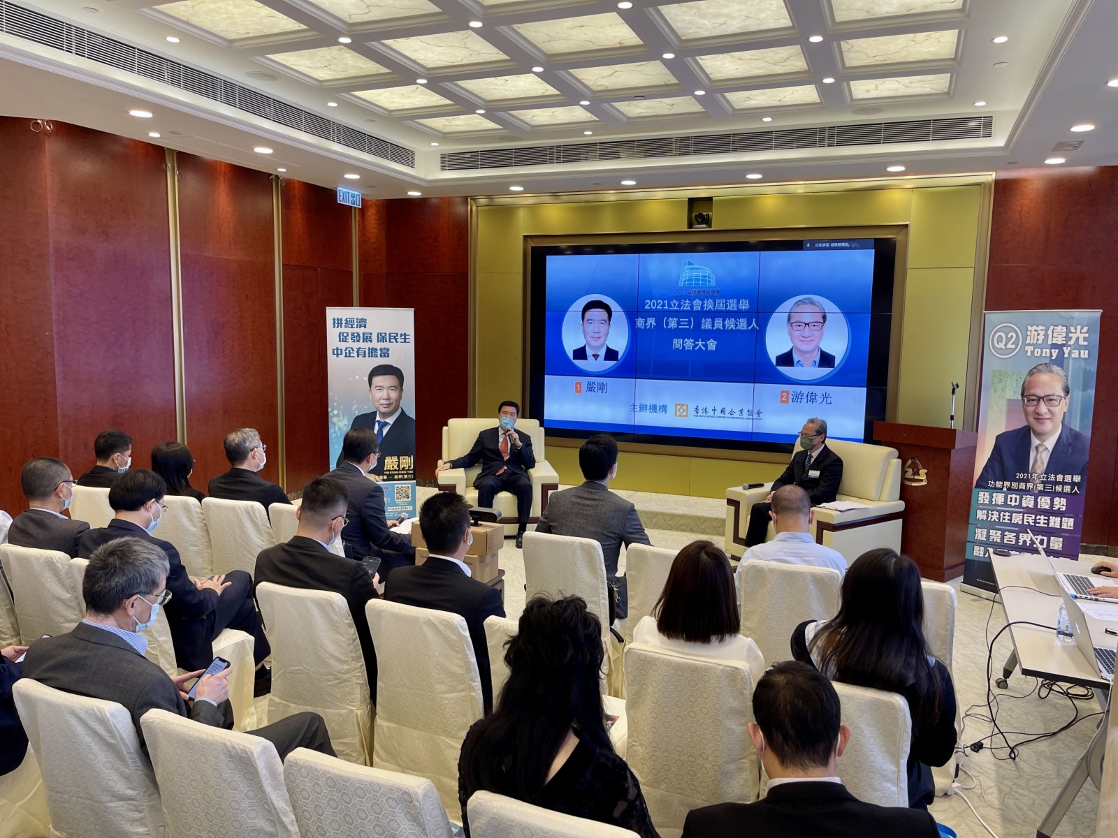 大公文匯全媒體報道:立法會換屆選舉將於12月19日舉行,全部90個席位都出現競爭,各界人士呼籲市民當日踴躍投票。香港中國企業協會今日(10日)舉行立法會商界(第三)選舉候選人問答大會。兩位候選人包括招商局港口首席運營官及總經理嚴剛、中國海外地產董事總經理游偉光出席,講述政綱以及回應業界選民提問。