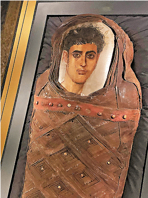 幾個世紀以來,埃及上層階級在死後都被放入木棺埋葬,但在希臘羅馬時期,這種木棺逐漸被蓋板取代。蓋板是用亞麻繃帶固定,表面經過裝飾,上面描繪着逝者完美的、神一般的面孔。不同於現代西方意義上的肖像,這種迄今為止已有2000餘年歷史的木乃伊肖像,是用熱蠟和顏料混合在一塊薄木板或亞麻布上繪製而成的,是現存最早的肖像畫之一。由於這類肖像在埃及法尤姆地區發現最多,故名法尤姆肖像。