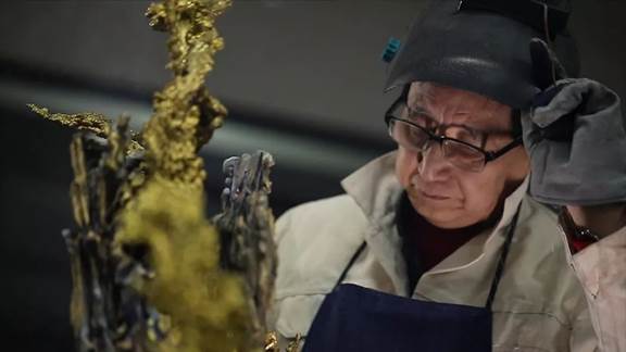 「我是非常喜歡新的東西的,包括我現在七十幾歲了還在學,銅的表面處理,視覺的表現力,我們在這方面一直在研究它,所以現在我們看到的,很多的銅器上面的色彩繽紛,千變萬化,其實就是這樣子一步步走出來,一步步摸索出來的。」朱炳仁的傳奇人生,也就在這時正式拉開了大幕。