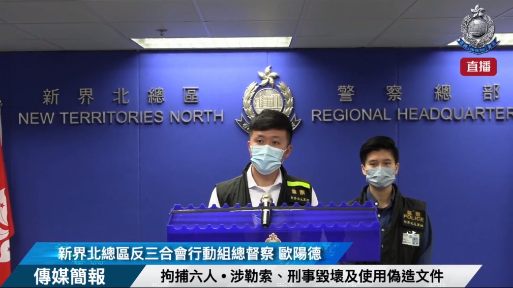 警方於案發當晚以涉嫌「勒索」拘捕一名53歲男子,後於翌日(10日)將案件轉交新界北總區反三合會行動組,並於10日及11日分別拘捕5名男子,年齡介乎18至22歲,分別涉嫌「刑事毀壞」、「使用偽造文件」等,警方亦檢獲他們的手機及犯案時身穿的衣物。被捕的53歲男子已獲准保釋候查,須於明年1月上旬向警方報到,其餘5人則仍被扣留調查。
