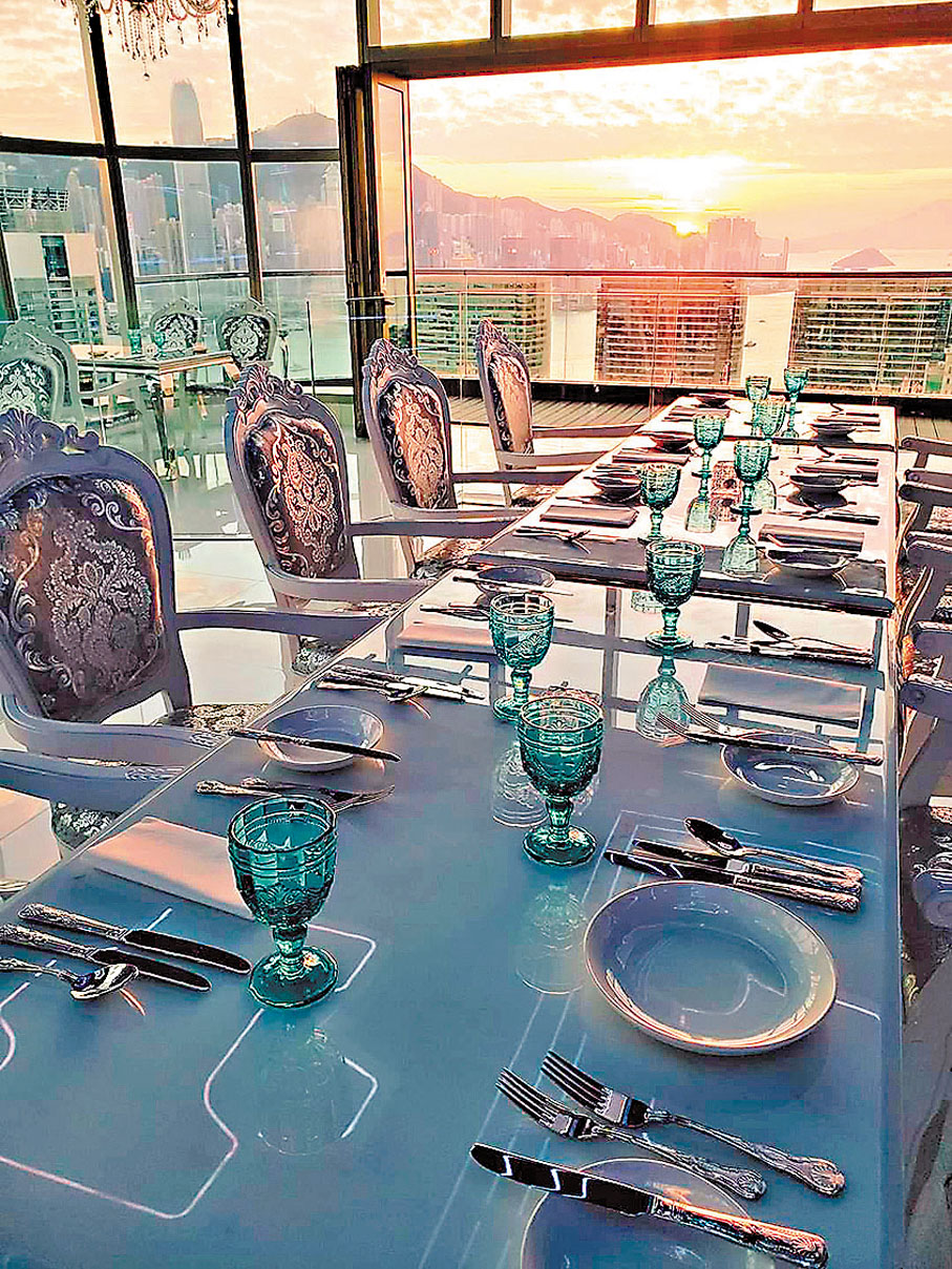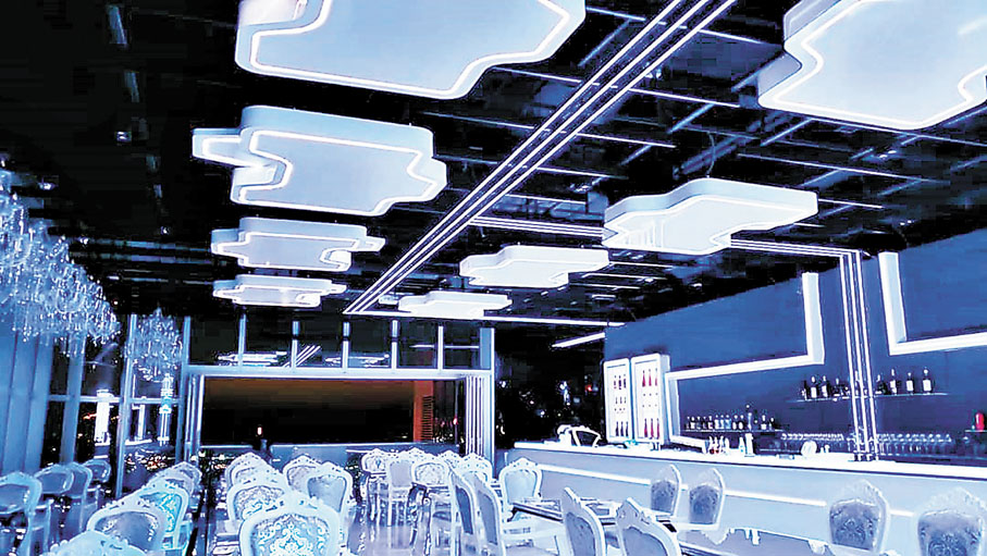 他們睇中室內外皆可眺望舉世聞名的維港景致,居高臨下,盡覽五光十色的醉人繁華大都市,是情侶燭光晚餐、青年人紅酒派對、唱K消遣勝地。於是全間餐廳裝潢設計以高貴冷酷的水晶燈與時尚玩味的LED燈裝飾,營造非一般的電子世界,再加上一條全港獨有LED隧道星際碎片走廊,特大LED屏幕加上特長鏡面打造一個變幻無窮的打卡位,非常適合舉辦聖誕、生日、婚禮、公司周年及各種慶祝派對,可彈性配合客人需求,呈現全方位專屬視覺畫面,讓打卡變得更貼心、更多元化,總之整間餐廳都是打卡位。
