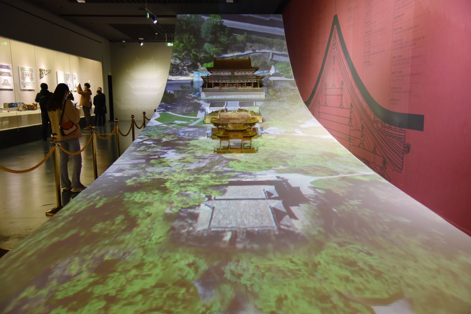 此次展覽由太原市晉祠博物館和陝西歷史博物館聯合舉辦,分為古建瑰寶、園林傑作、人文淵藪三個單元,共展出古建築構件、書畫、聯匾、碑拓、塑像等珍貴展品118件(組)。展覽以文物為載體,結合模型、場景、多媒體、VR數字化互動體驗等輔助展陳方式,圍繞「晉祠是一冊歷史深處走來的優美畫卷,是一篇歷久彌新的不朽文章」的設計理念,不僅系統地闡釋了晉祠的建築藝術、歷史傳承、人文景觀與文脈積澱,同時亦為公眾呈現了一場傳統文化與現代技術相結合的視覺盛宴。