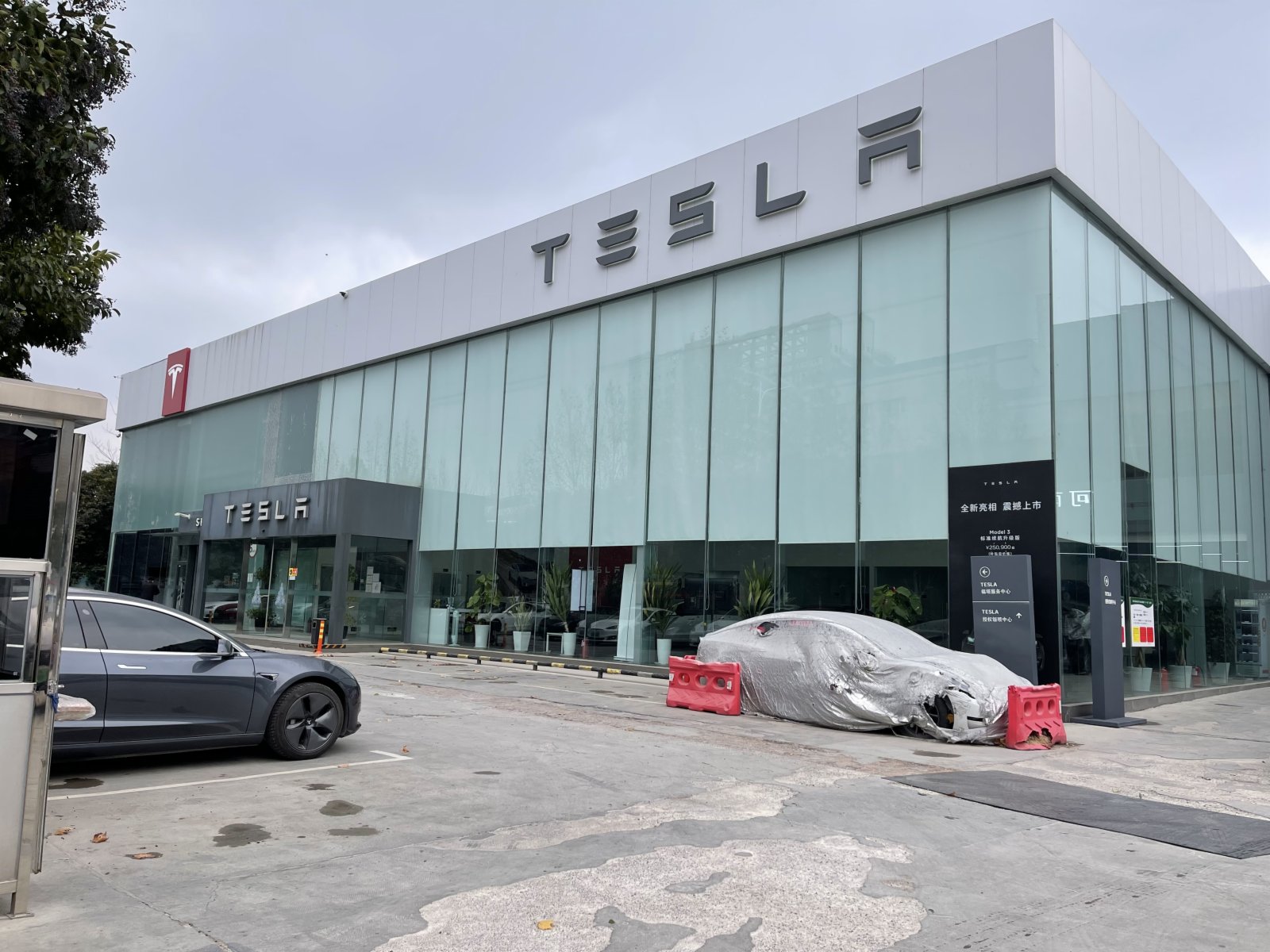 記者看到,張女士的那輛特斯拉Model3,目前仍停在鄭州中原福塔4S店,因車身被塗改,車身被車衣籠罩着。