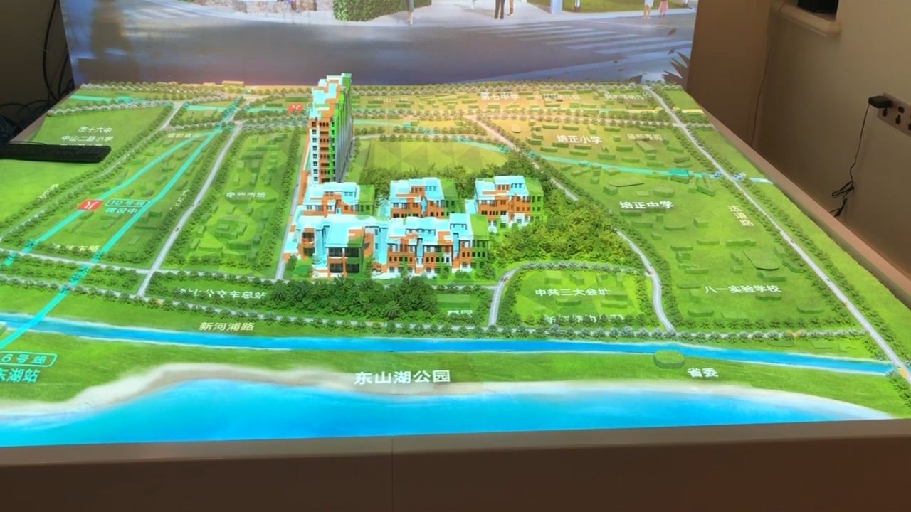據吳樹偉介紹,他的創業項目為「AR實景模擬」,即用光影技術投射出真實的場景,除了大型光影秀和景區的光線亮化,常見的有售樓處的模擬沙盤、科技館裏的沉浸式體驗等等。吳樹偉和他的團隊,就是以光影為語言傳達各個所需要的場景。
