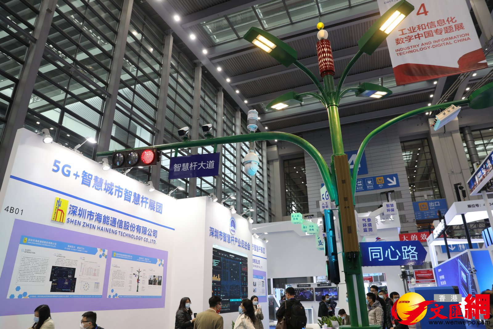 記者在現場看到,海能通信股份最新自主設計、研發的5G智慧城市智慧桿及管理平台在展團中閃耀登場。深圳市智慧桿產業促進會會長王海龍向記者重點展示了5G智慧桿管理平台和功能模塊及技術應用。記者看到,當工作人員掀開路面沙井蓋時候,綜合管理平台會發出預警信號,並傳輸沙井該具體位置和現場實況圖片,以便管理人員第一時間響應處理,而這一整個過程僅需僅幾秒鐘。
