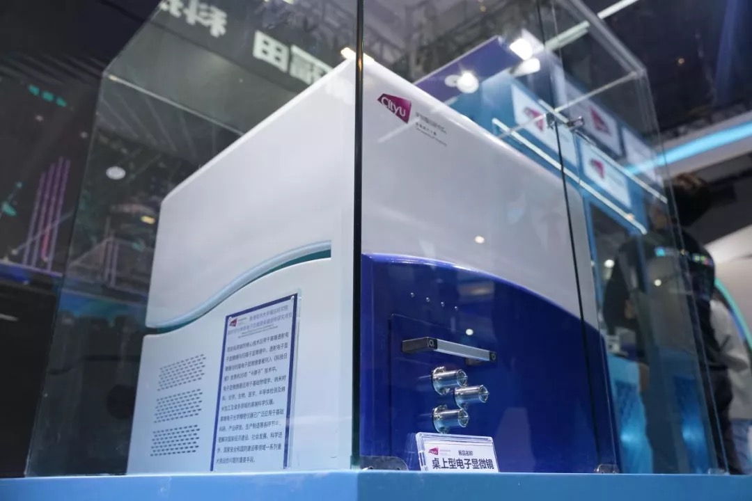 香港城市大學深圳福田研究院帶來了一款桌上型電子顯微鏡。記者在高交會現場看到這台四四方方、並無過多特點的機器,分辨率卻可以達到納米級,是常規電子顯微鏡無法達到的精度。「打個比方,用這樣一台電子顯微鏡,放大到10倍左右,就可以看清細胞裏面DNA的片段,然而它卻能放大到100倍!」現場工作人員介紹。