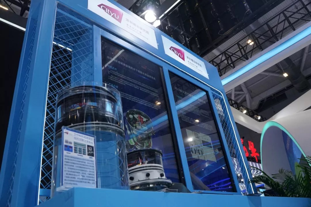 此外,香港城市大學深圳福田研究院還帶來一款名為「由結構形態轉換實現的沉降上浮系統」的科研產品。據悉,這套系統可理解為「水下機械人」,通過改變一塊特殊處理的板殼形態,可以遠程控制設備的沉降。目前該技術已經在淡水河流水質檢測方面實現初步應用。