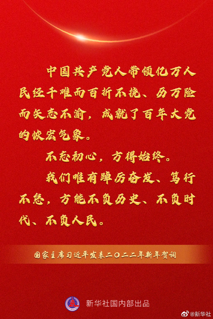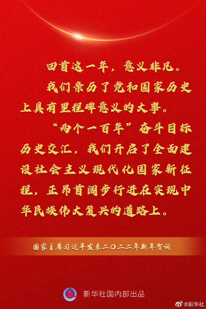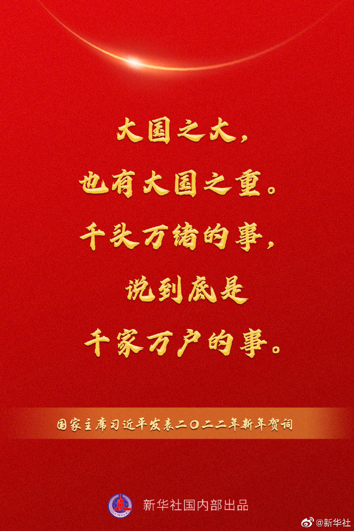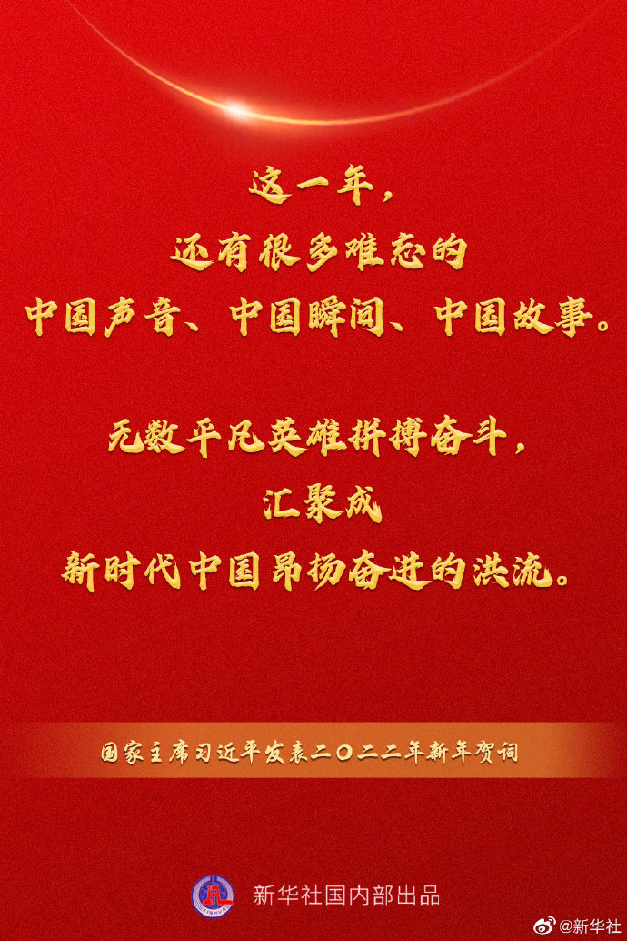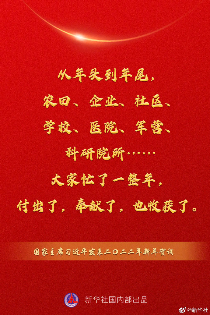 國家主席習近平發表二〇二二年新年賀詞,一起來看金句。