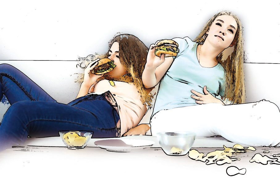 在《黃帝內經·素問·痹論》說:「飲食自倍,腸胃乃傷。」若飲食不節,或過食酒肉油膩之物,致脾胃運化不及,飲食停滯胃腸而為食積,短期會影響消化排便,長期會導致脾虛,出現消化障礙、營養不良等問題。由於每個人的體質及消化能力都不一樣,進食食物的分量因人而異。大節後食滯,重點在於控制以後的食量、葷素配搭得宜,並酌情進行摩腹保健。所謂「摩腹」,就是利用雙手輕柔地、規律地、有目的地按摩腹部,以達至消滯的效果:建議在排空小便後,採仰臥姿勢,放鬆全身肌肉,有韻律地緩緩用全掌順時針繞臍摩腹一百圈,約五分鐘內完成,然而本身患腫瘤、闌尾炎、腹膜炎或急腹症患者不宜。