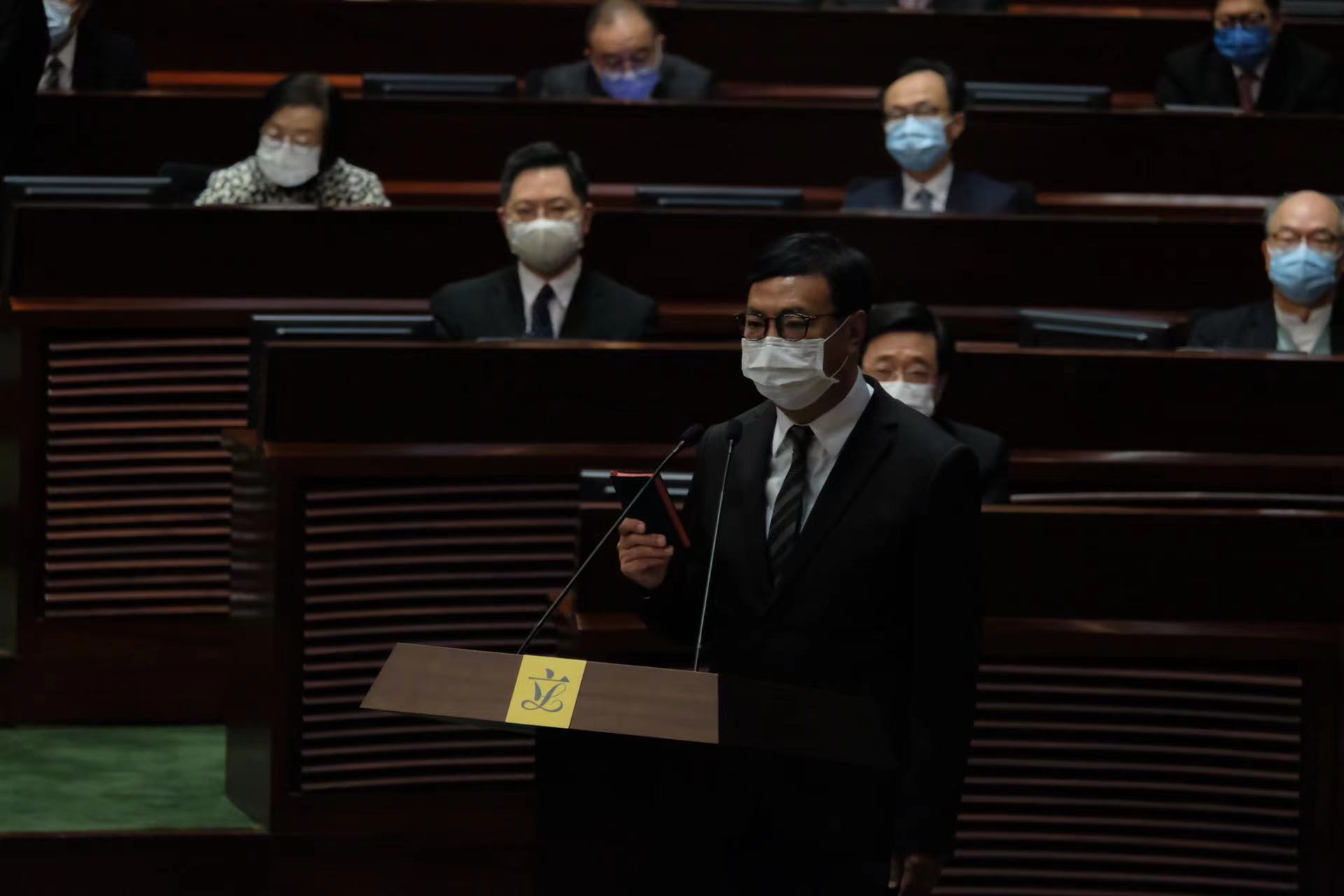 大公文匯全媒體記者今早在立法會宣誓現場所見,本屆立法會宣誓除了高懸的國徽,在主席台上還擺放了國旗區旗,這與2016年及過往立法會宣誓明顯不同,這一安排相信是進一步明確宣示第七屆立法會是在中央完善選舉制度的基礎上選舉誕生的立法會這一特定主題。
