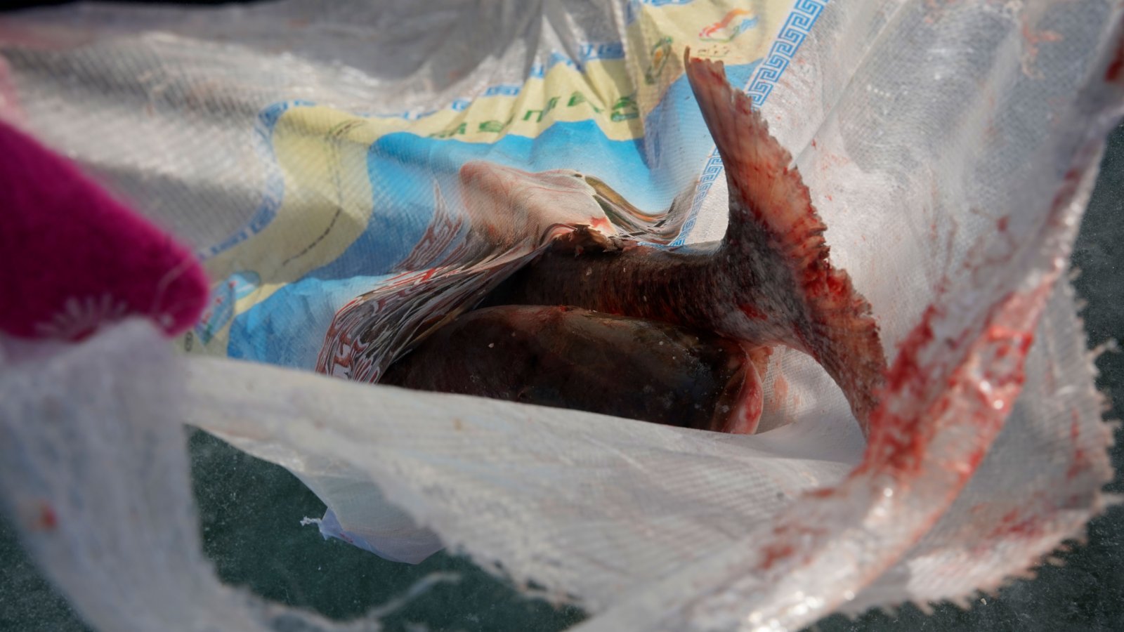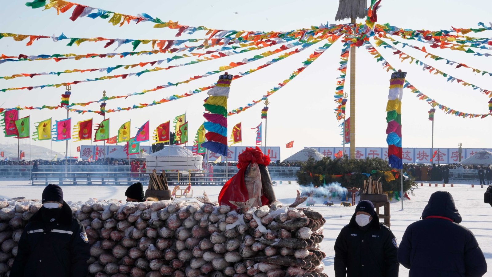 除了頭魚,查干湖的各個出魚口也守着眾多遊客,準備搶購新打撈上來的活魚。「每年都會來買,今年買了兩條,20元1斤一共花了400多元。昨天打撈上來的會便宜一點,18元一斤,我喜歡新鮮的,就買的剛打撈上來的活魚,現撈的比昨天打撈出來的稍微貴一點。」松原本地遊客高萬疆從2號出魚口搶購了2條魚,用了一條麻袋將兩條魚裝走。