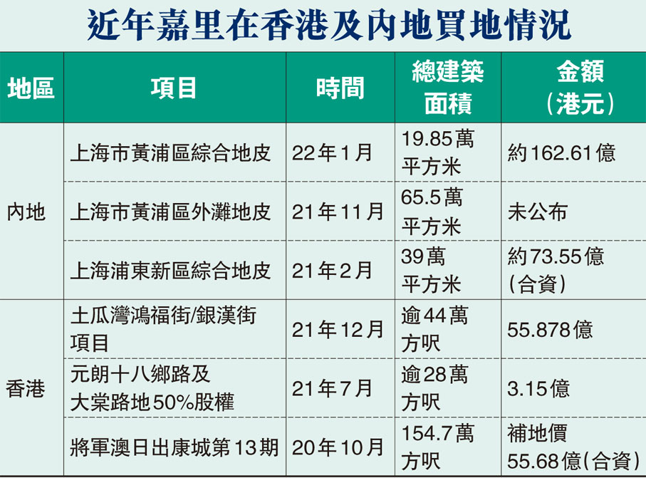 除本次項目,嘉里最近一次在上海拿地在去年11月,同樣由卓妙取得黃浦區項目。而去年2月,嘉里亦聯合GIC以60億元人民幣拿下浦東區超大綜合體地皮,雙方按40%及60%比例持有及發展項目地塊。