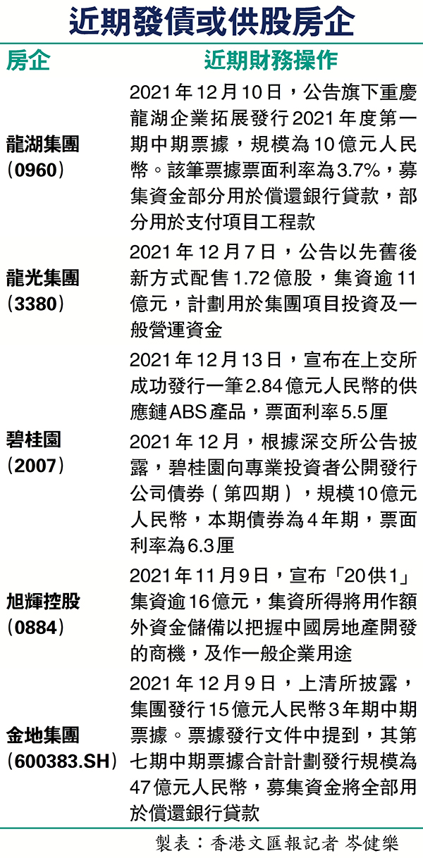 有市場意見指出,去年12月內地相關監管機構整合了11間民營開發商的支持對象名單,要求國有房企收購相關資產以緩解他們的流動性壓力。早前不少大型房企已經發債、供股集資,儲備彈藥準備執平貨,雖然中央會維持「房住不炒」政策,但新政策若落實,將有利大型房企及國有房企收購。