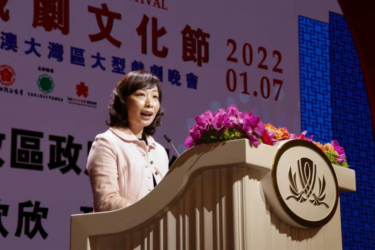 澳門特區政府文化局局長穆欣欣在致辭中說,歷史造就了澳門獨特多元的文化,澳門的不同族群造就了中西文化並存的澳門文化,而中華文化正是澳門文化的主調,是數百年來生活在澳門這片土地上的中華兒女努力傳承、維繫的血脈。澳門在粵港澳大灣區城市群中的定位為「打造以中華文化為主流、多元文化共存的合作交流基地」,這是國家給予澳門的定位,是對澳門在歷史上發揮的獨特作用的肯定,也是新時代下國家賦予澳門的新使命。她說,中國戲劇是一門集中華傳統文化大成的綜合藝術,一直不乏創新,並與時代同行。她以最中國的方式詩意地講述中國故事,體現了圓順和諧、舉重若輕的中國氣度,傳遞著化繁為簡、以少勝多的中國智慧。她表示,熱愛中華文化、熱愛中國戲劇的種子已在澳門生根發芽,這是使澳門民眾尤其是青少年增強國家認同感和文化自信最有效的途徑,這是因為愛、所以愛的結果。