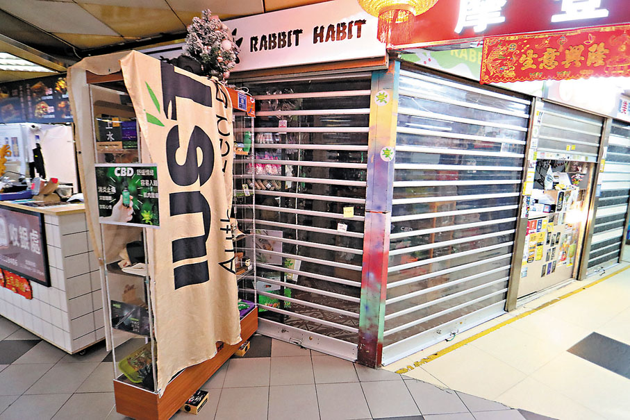 涉案店舖位於葵涌廣場,面積僅約數十呎,據悉已在上址開業兩年,門口有張貼廣告指明該店出售含CBD成分的食材、香薰精油、沐浴用品等,更說明CBD有助紓緩情緒、幫助睡眠以及消炎止痛等。在警方行動後,上址昨日已重門深鎖,隔閘望入舖內,只見部分貨架空空如也,但仍放有不少其他潮物,包括各種擺設飾物、帽、毛巾等。